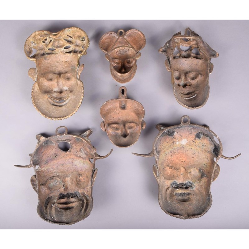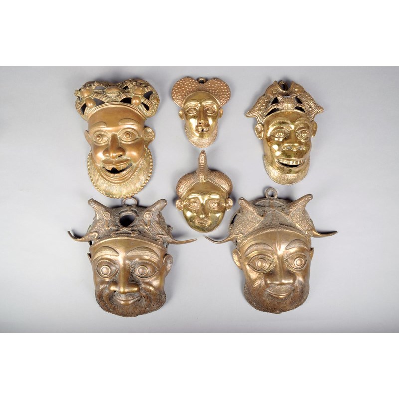 Six Fulani brass masks, Cameroon, the largest 31cm high. (6)