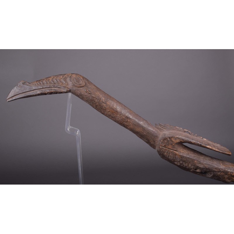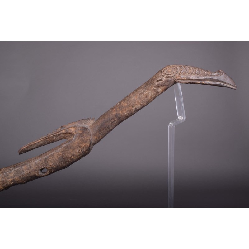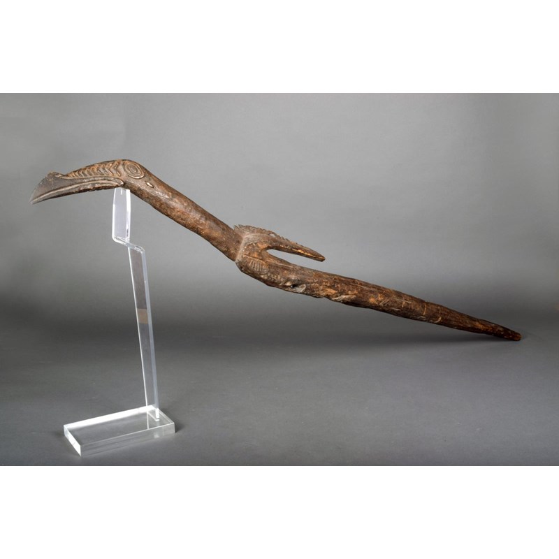 A Sepik dance staff, Papua New Guinea, carved a bird, 111cm long.