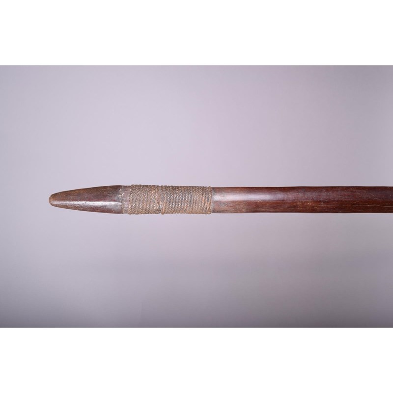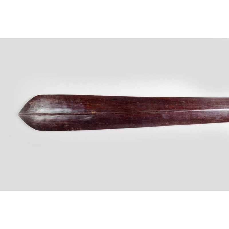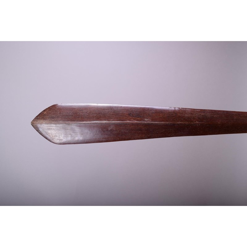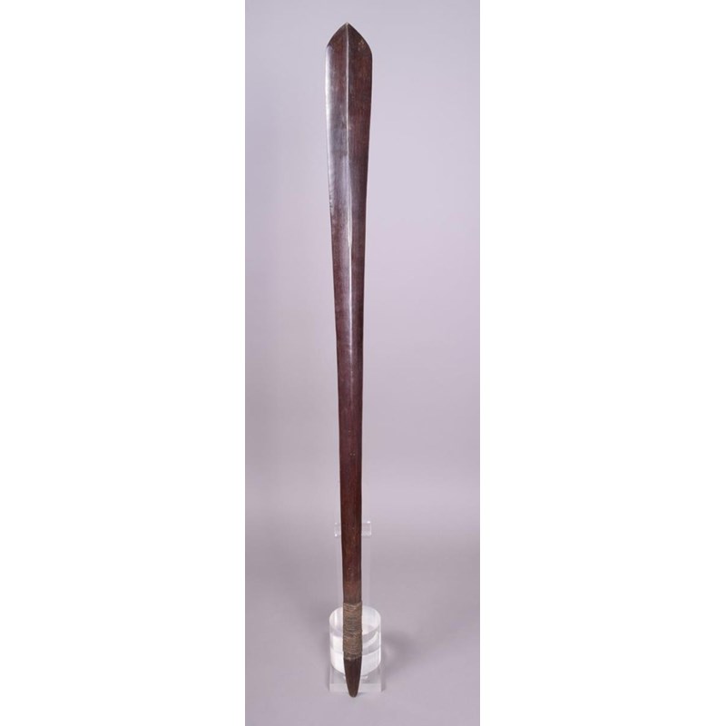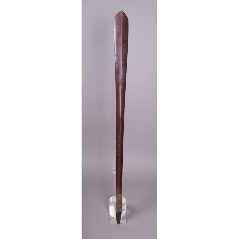 A Solomon Islands club, Melanesia, of eliptical spatulate form with a medial ridge to the blade, tapering to a point with plaited fibre bound handle, 116.5cm long.