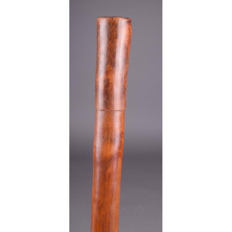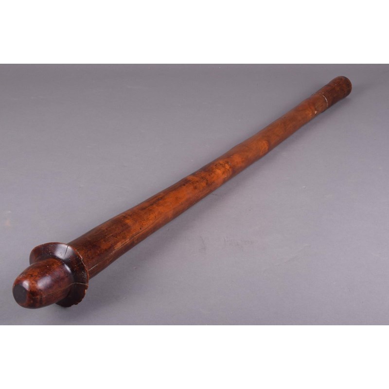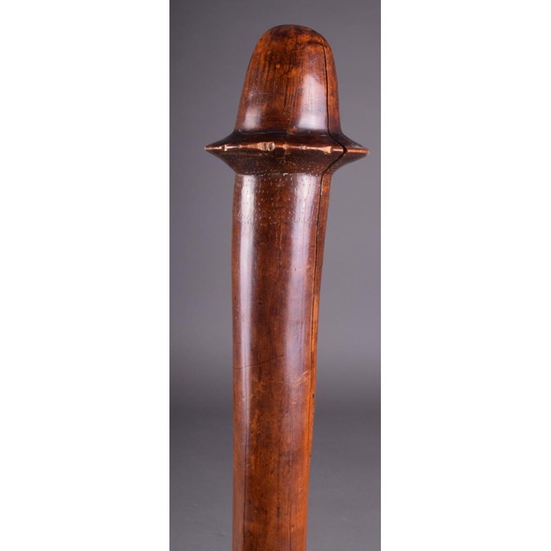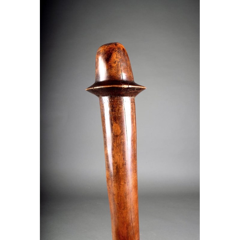 A New Caledonia war club, Kanak people, Melanesia, of phallic form with pricked decoration under the flange, with a stepped handle, 85.5cm long.