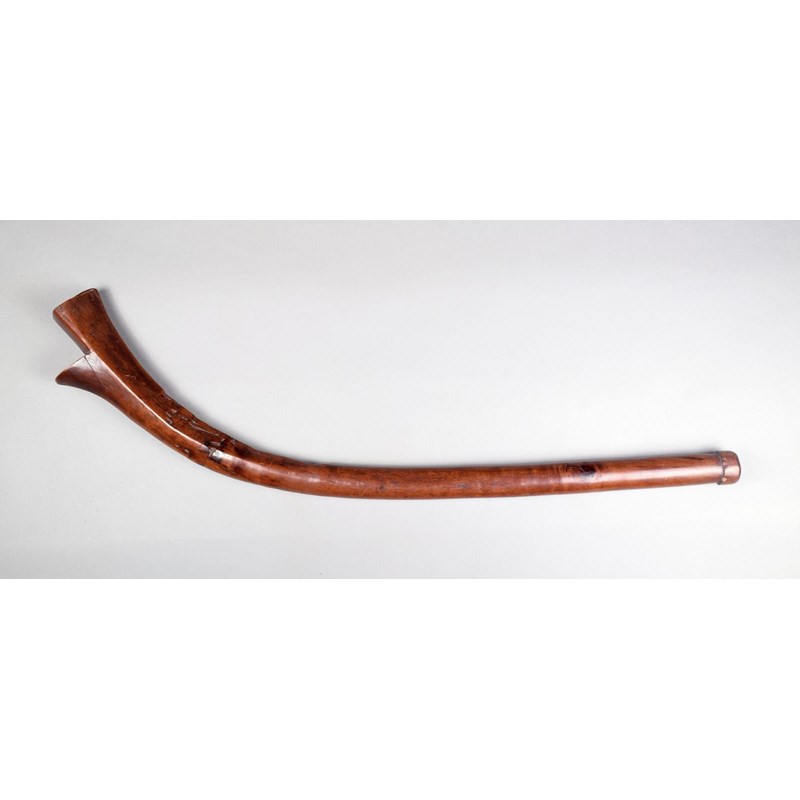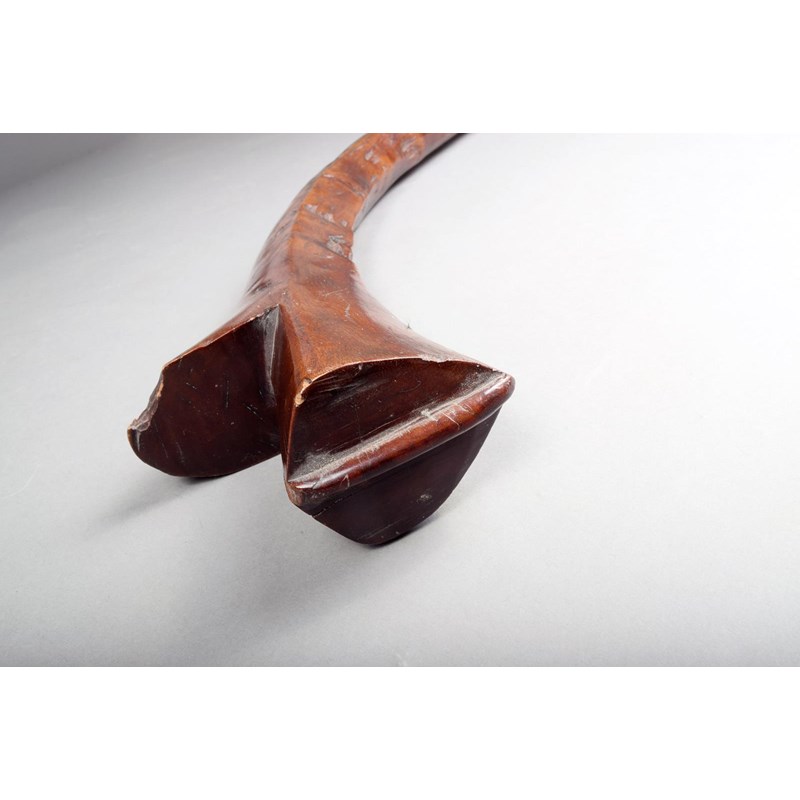 A Fiji gata, spurred club, Melanesia, with a curved cutting edge, ridged tip and spur, 90cm long.