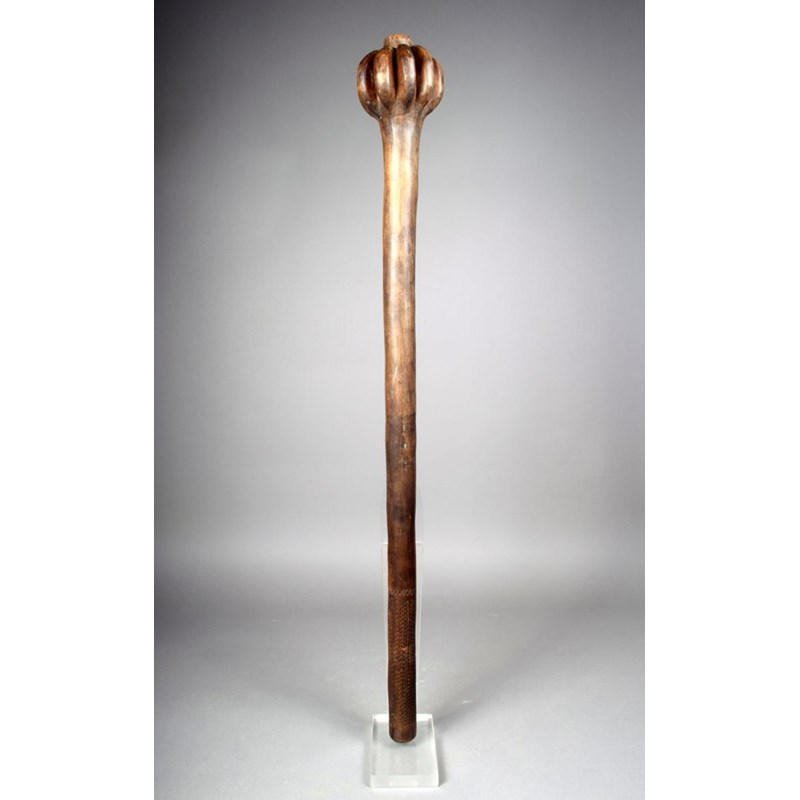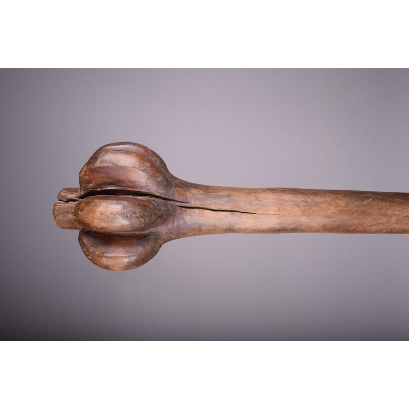 A Fiji vuniaku club, with eight semi-circular lobes to the head and with zig zag carving to the grip, 102cm long.