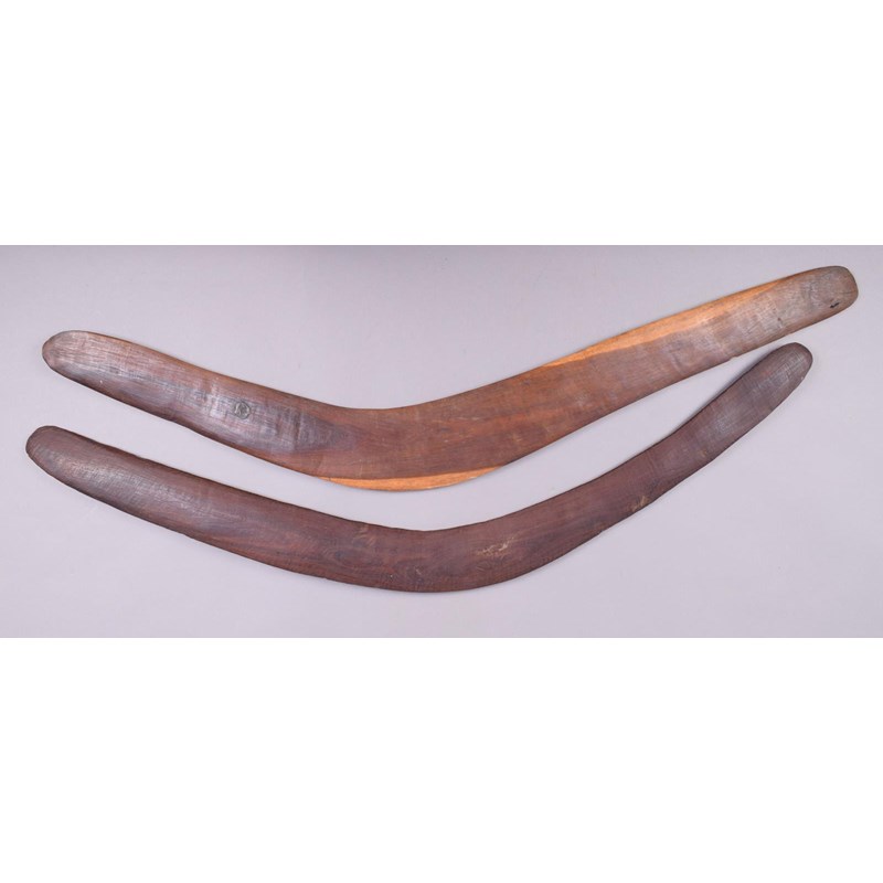 Two Aboriginal boomerangs, 76.5cm and 73cm wide. (2)