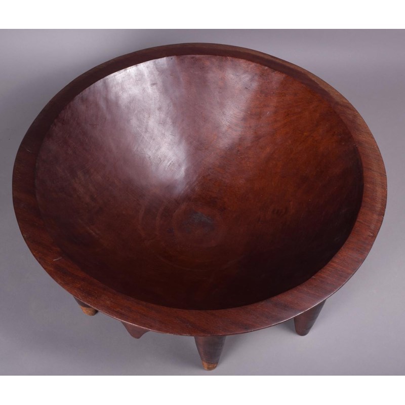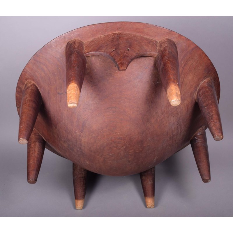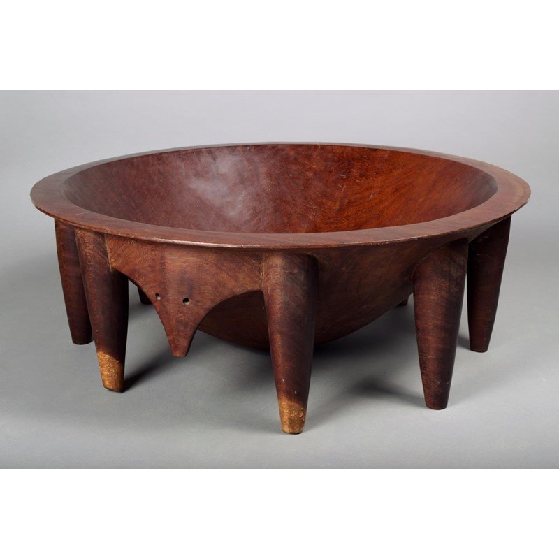 A Fiji kava bowl, of large proportions with pierced lug handle and eight legs, 29cm high, 79cm diameter.