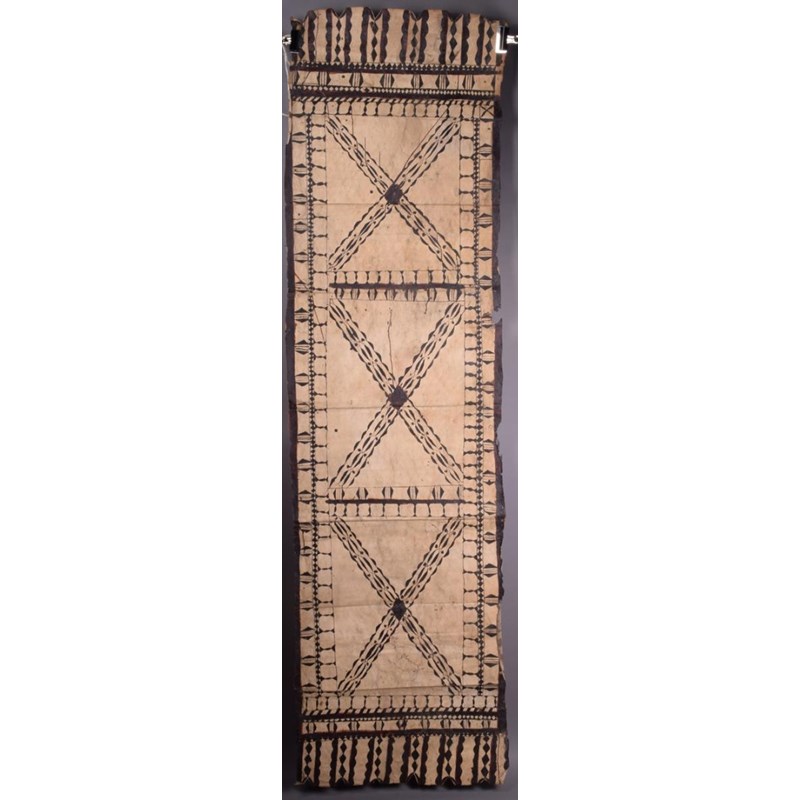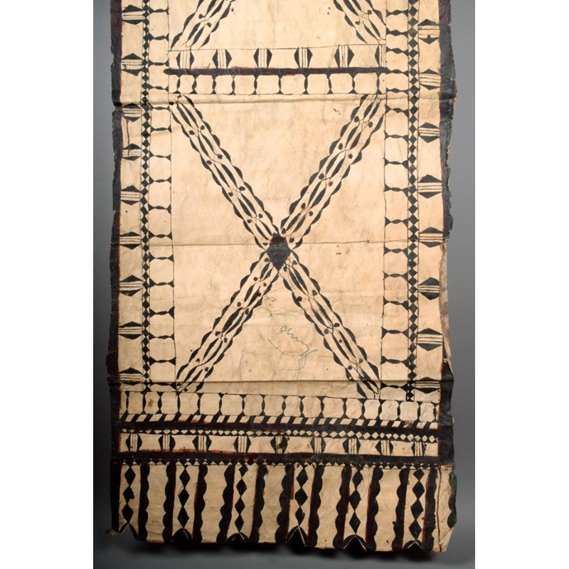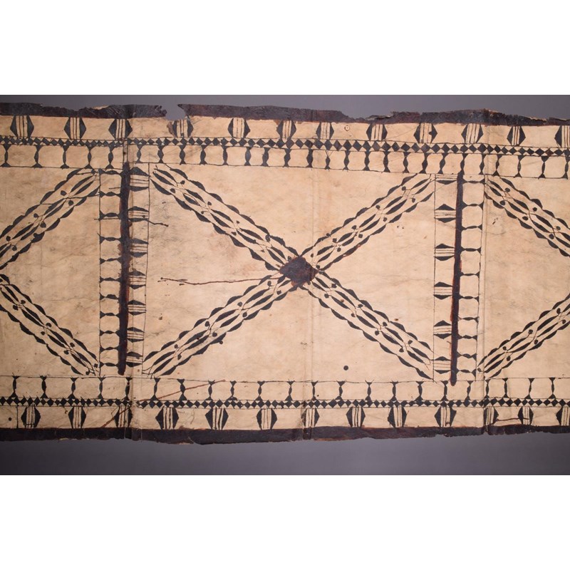 A Wallis Island ceremonial tapa cloth, rectangular with cut ends and decorated geometric patterns, 19th century, 230 x 64cm.