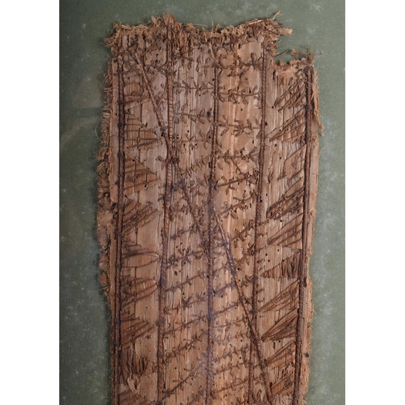 A rare Tonga / Somoa fibre matrix mould for a tapa, with banded designs, 52 x 13cm, framed and glazed.