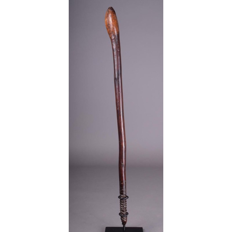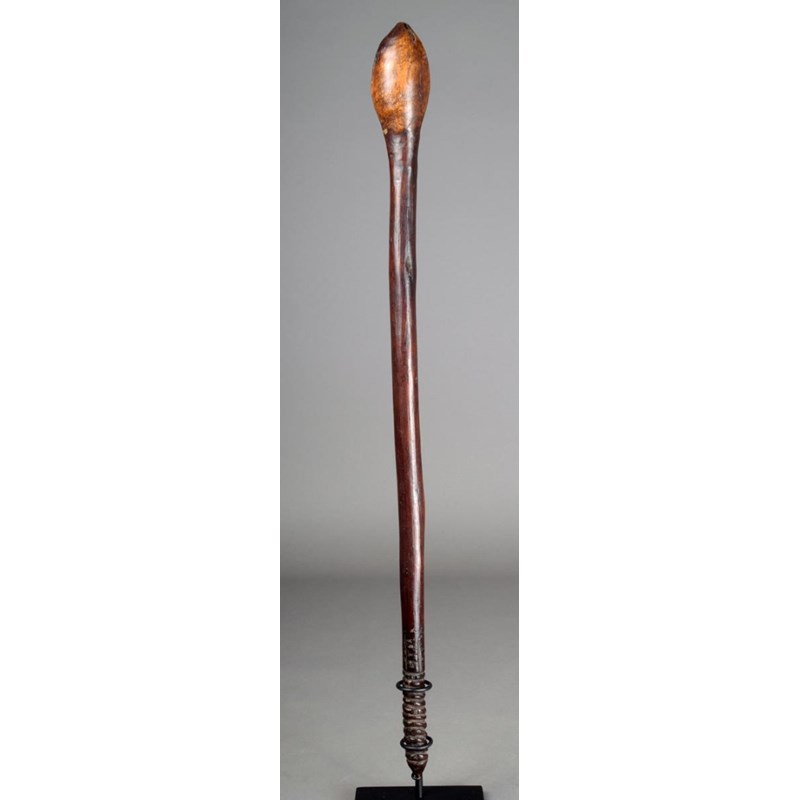 An Aborigine club, with an ovoid head and ring carved grip with tapering butt, 59.5cm long.