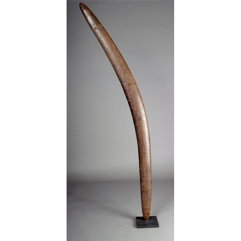 An Aborigine large club, with tooth engraved linear decoration to both sides, 103.5cm long.