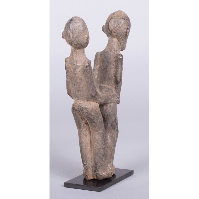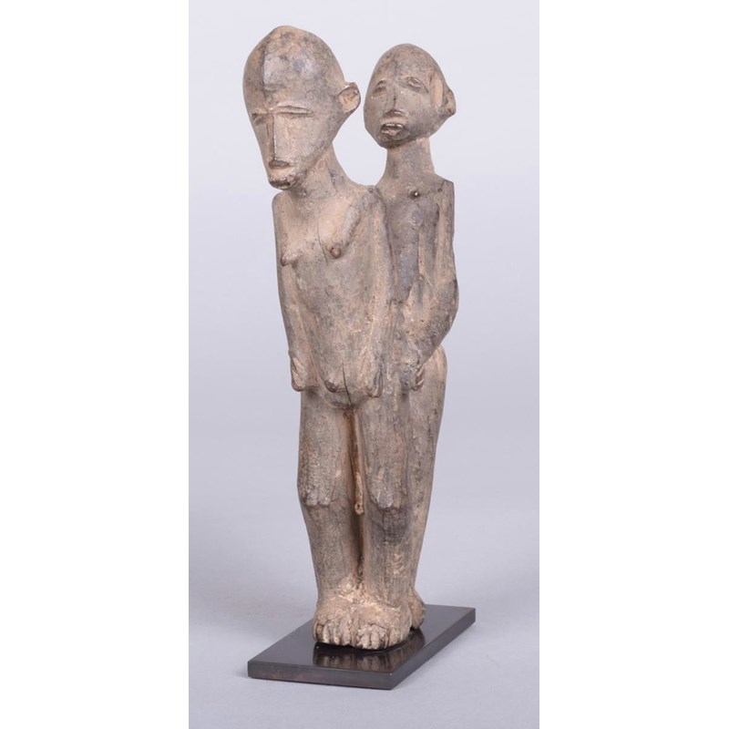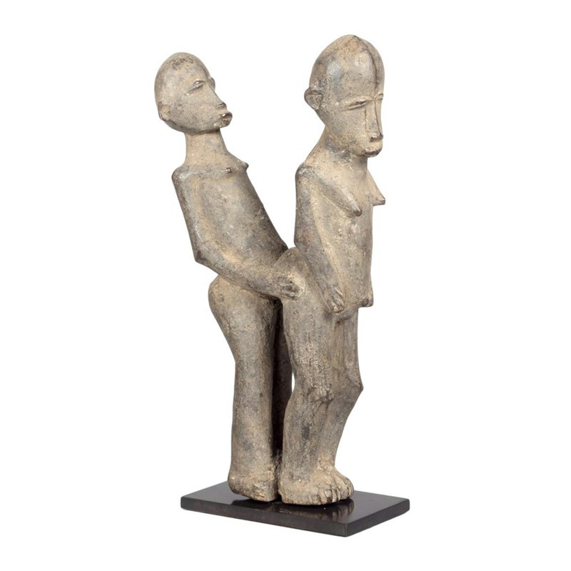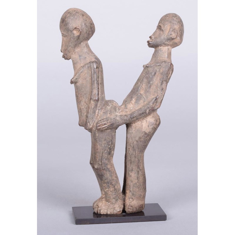 A Lobi betise group, Burkina Faso, a male and female copulating, 19cm high, on a stand.