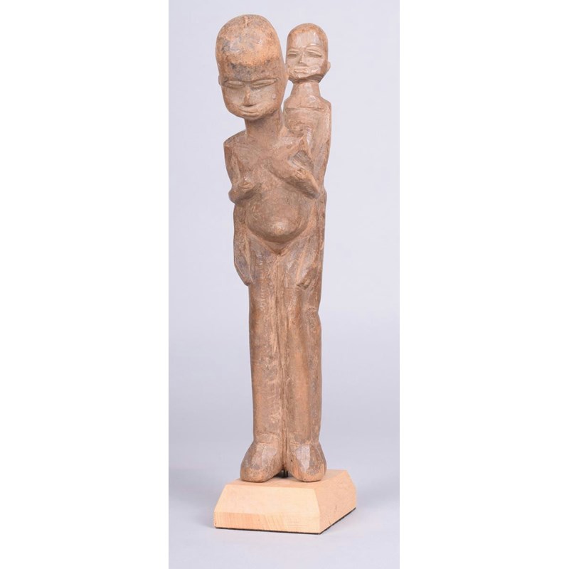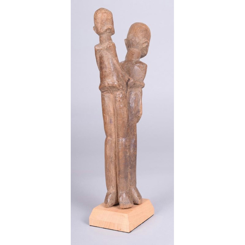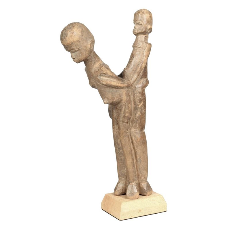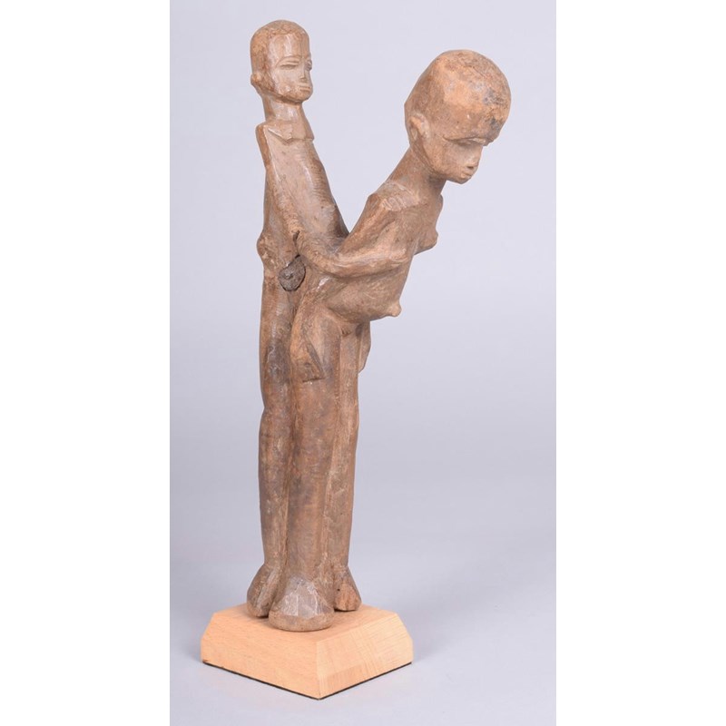 A Lobi copulating couple, Betiste, Burkina Faso, the male with his hands on his partner's breasts, 30cm high, on a stand.