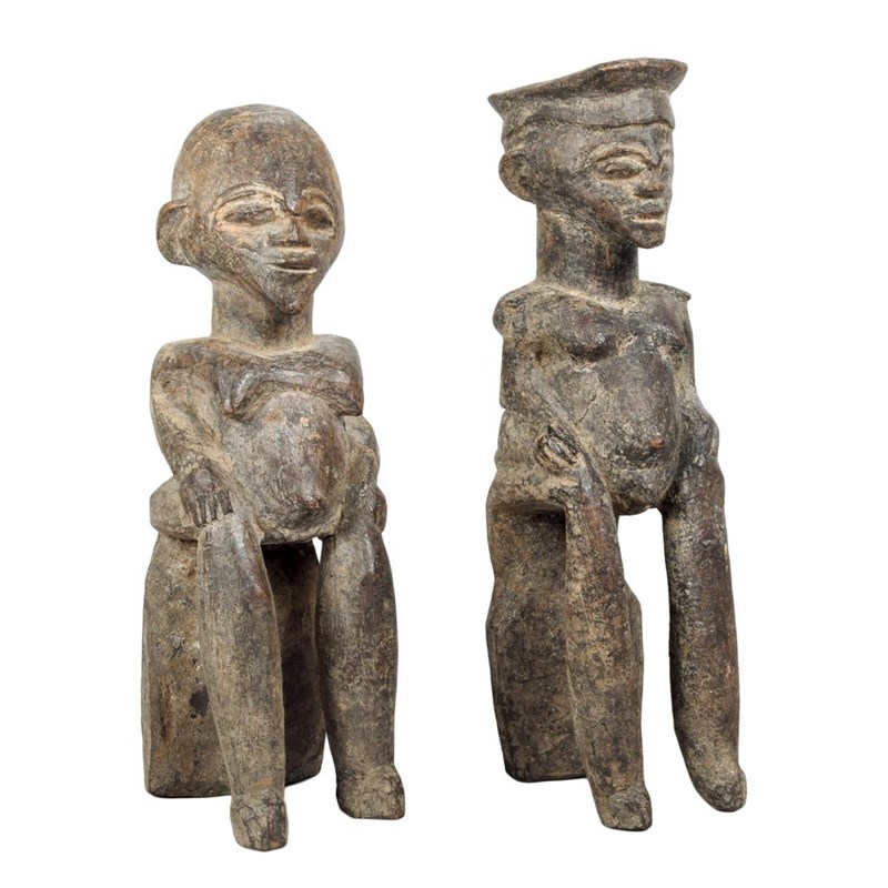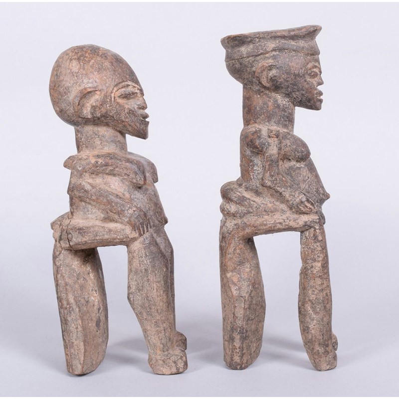 A pair of Lobi seated male and female figures
