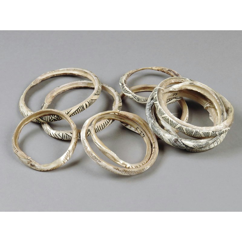 A group of Kilenge shell bracelets, Papua New Guinea, with incised and filled patterns, the largest 10.4cm diameter. (11)