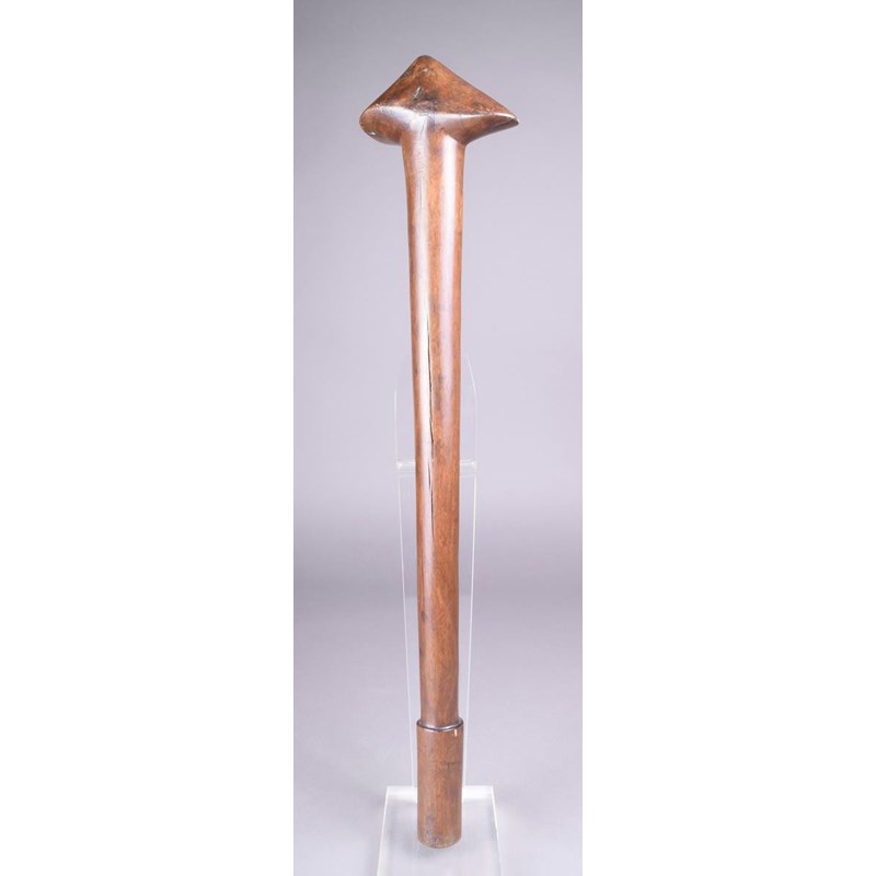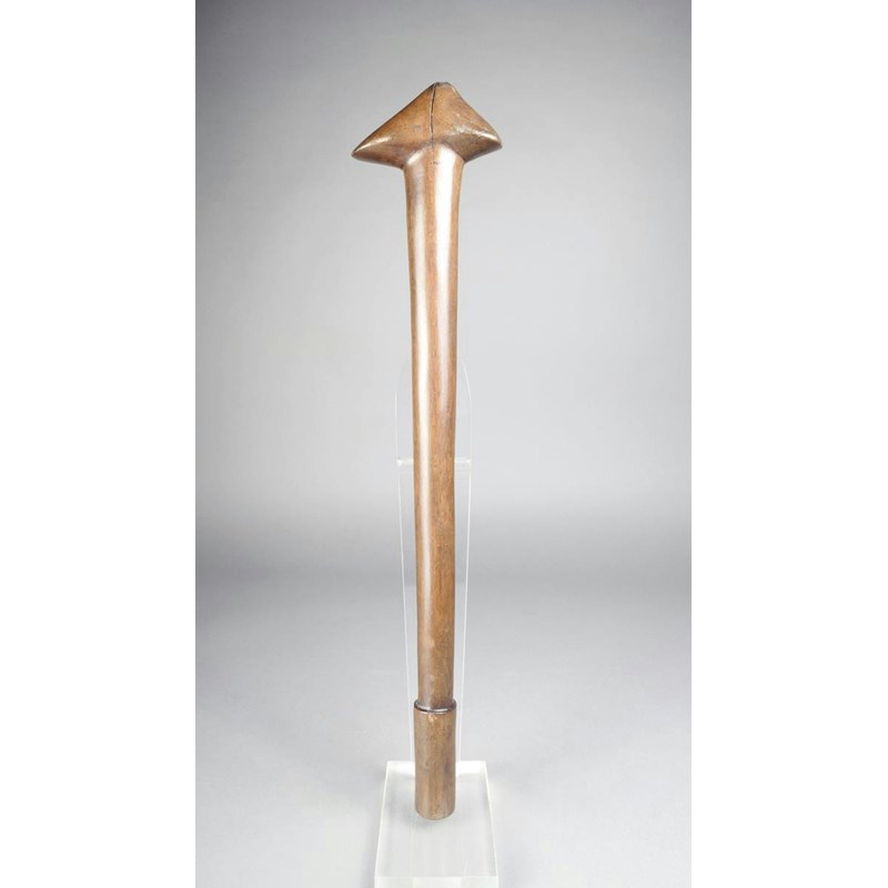 A New Caledonian club, Melanesia, with a triangular 'ray' head and a raised grip, 62.5cm long.
