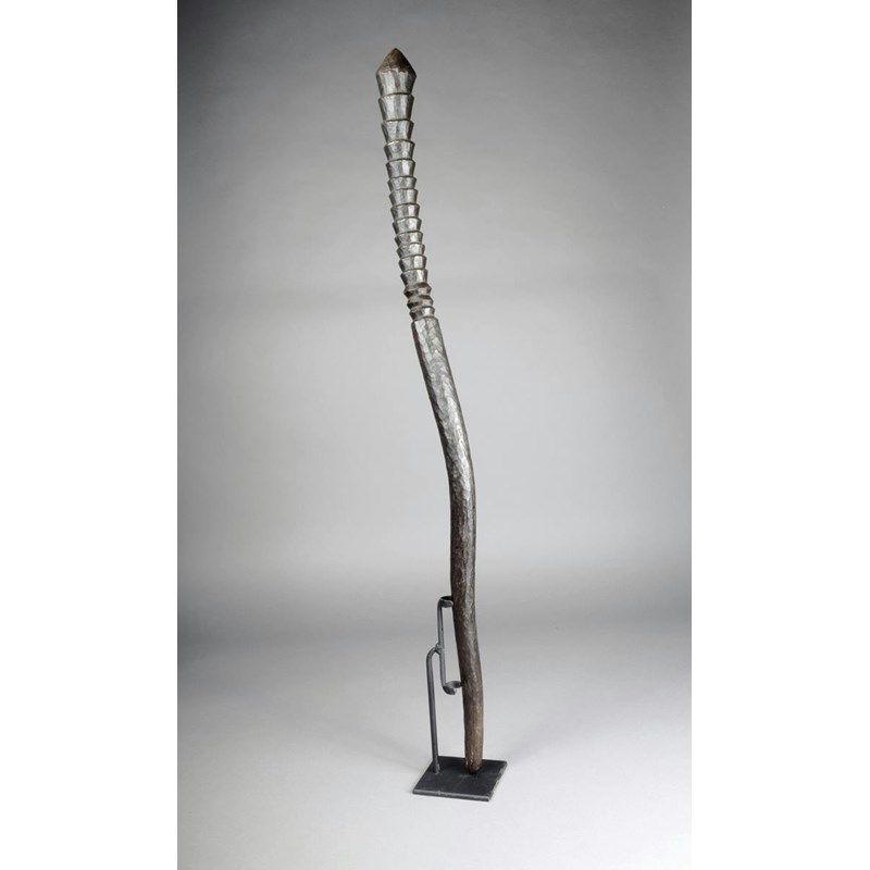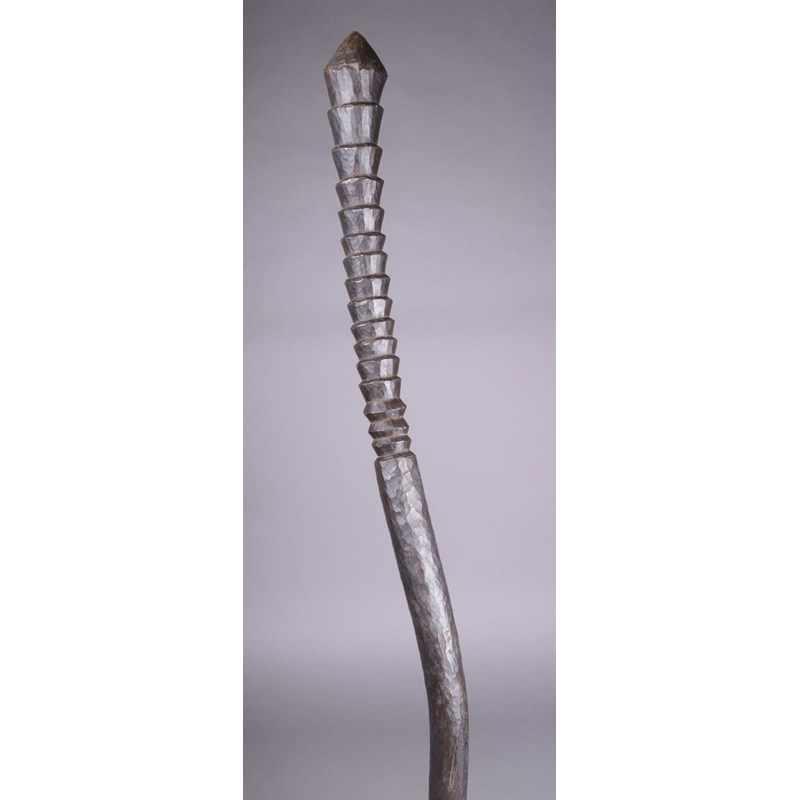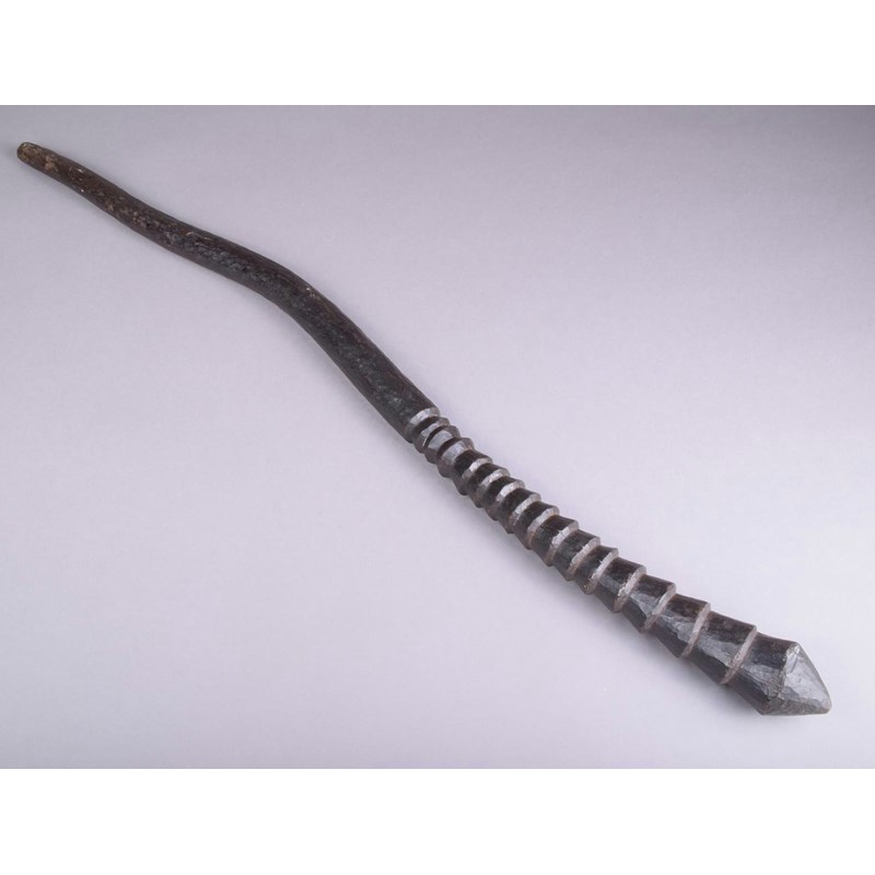 A West African staff, with a textured finish and a stepped finial, 94cm long.