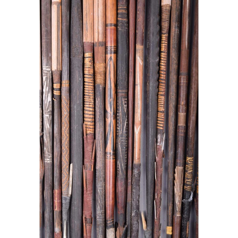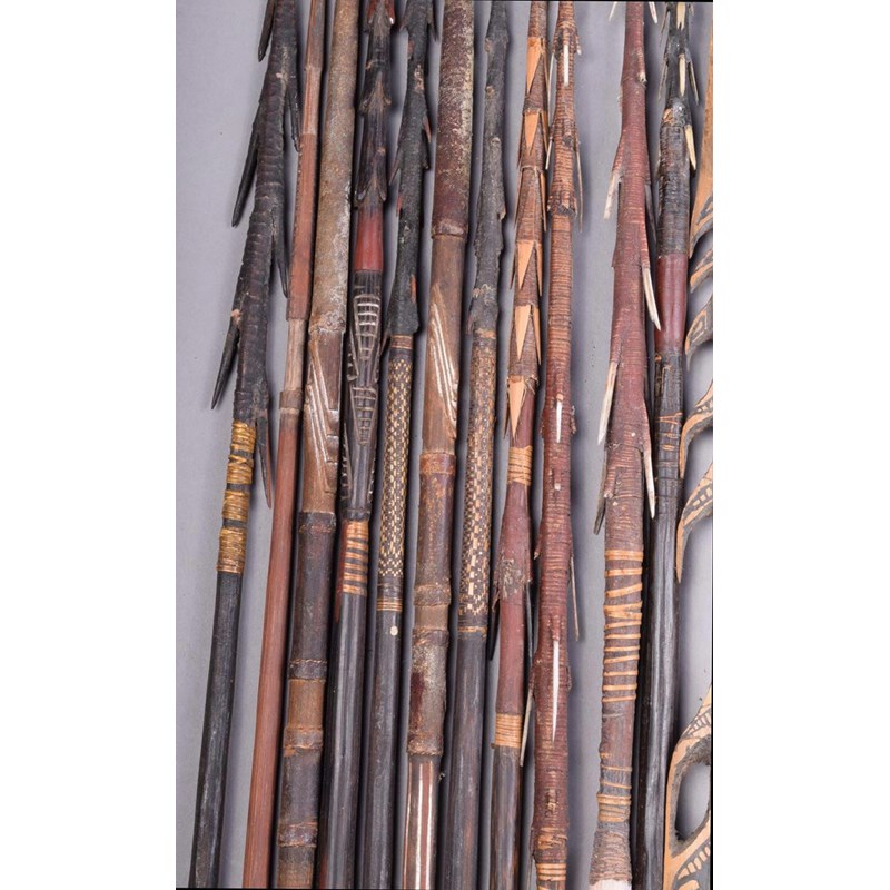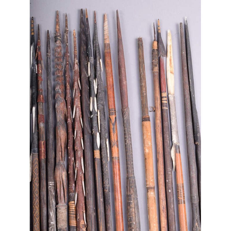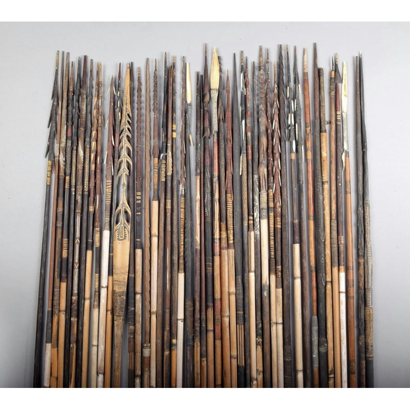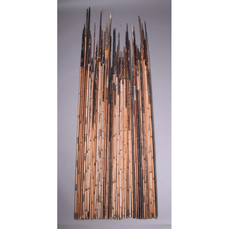 A collection of Oceanic spears, bamboo/reed with applied plain and barbed tips, with carved and pigment decoration, the longest 163.5cm. (45)
