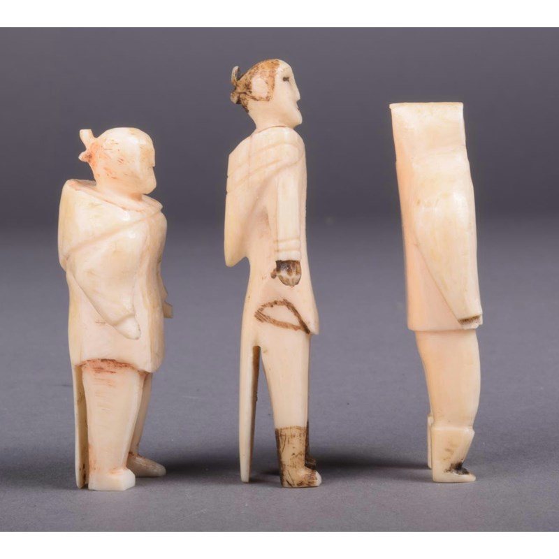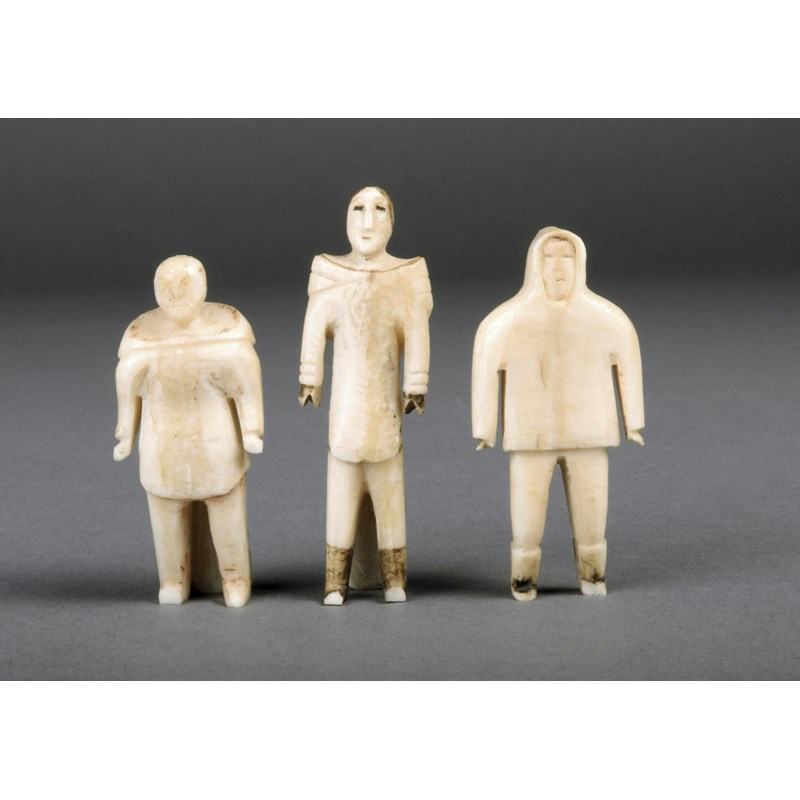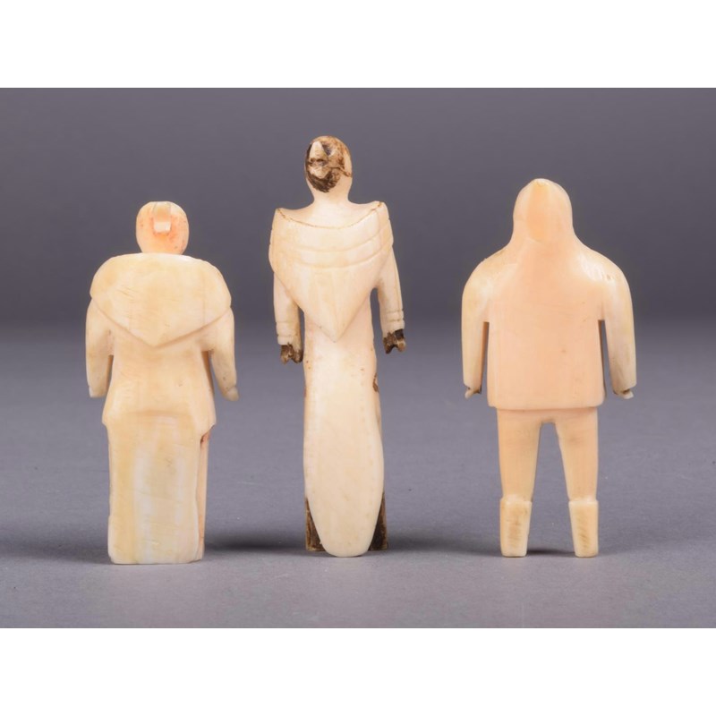 Three Inuit carved whale bone figures
