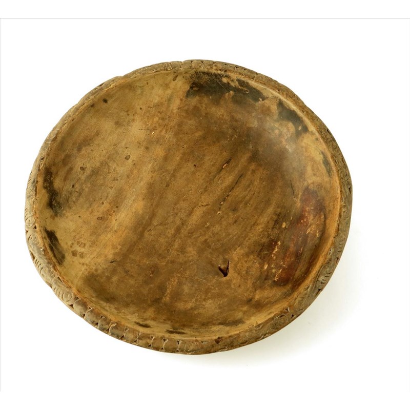 A Trobriand Islands shallow bowl, with a carved rim, 37cm diameter.