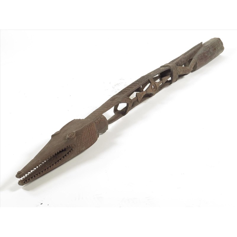 A Papua New Guinea carved and pierced post, with an ancestor figure and a crocodile, 222cm high.