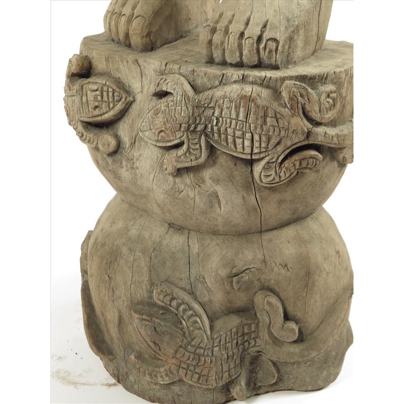 A Dayak standing fertility figure, Indonesia, the base carved lizards, 122cm high.