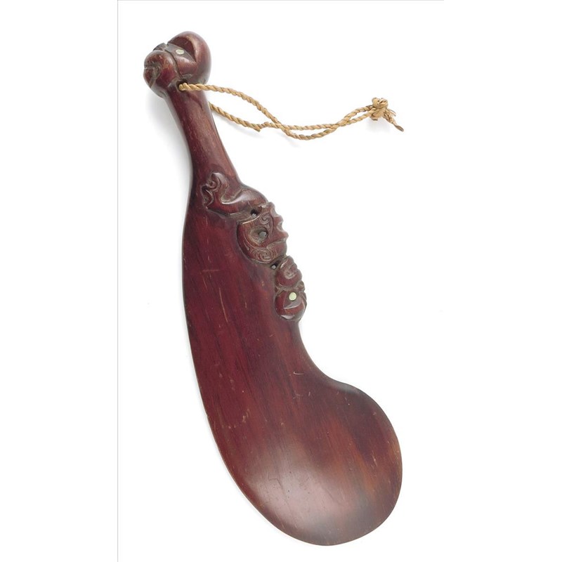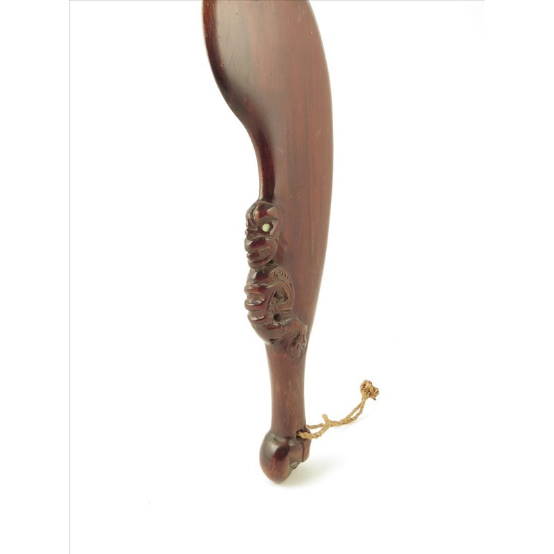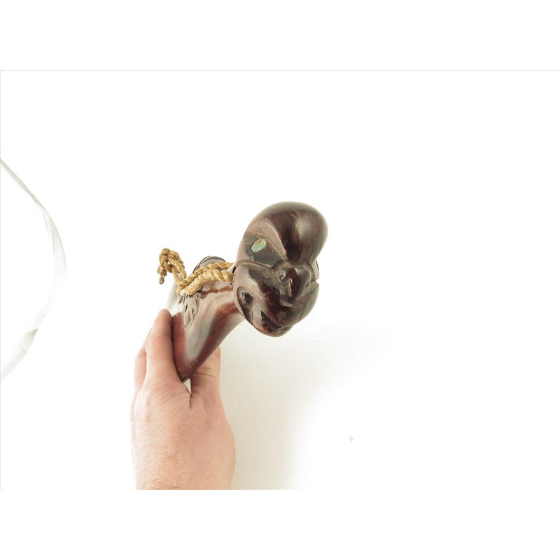 A Maori wahaika, carved tikis with abalone eyes, 40cm high.