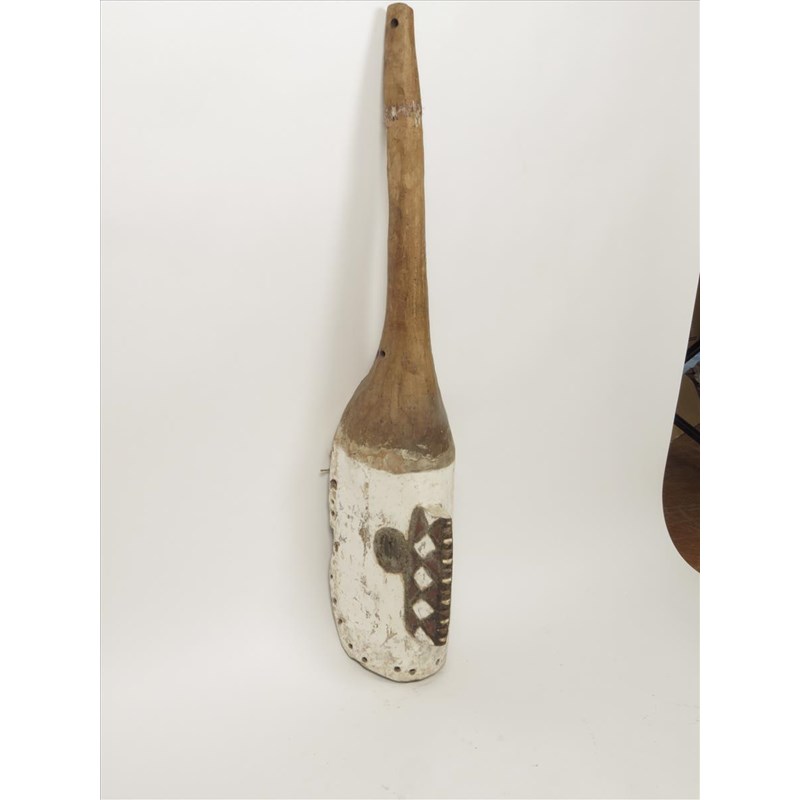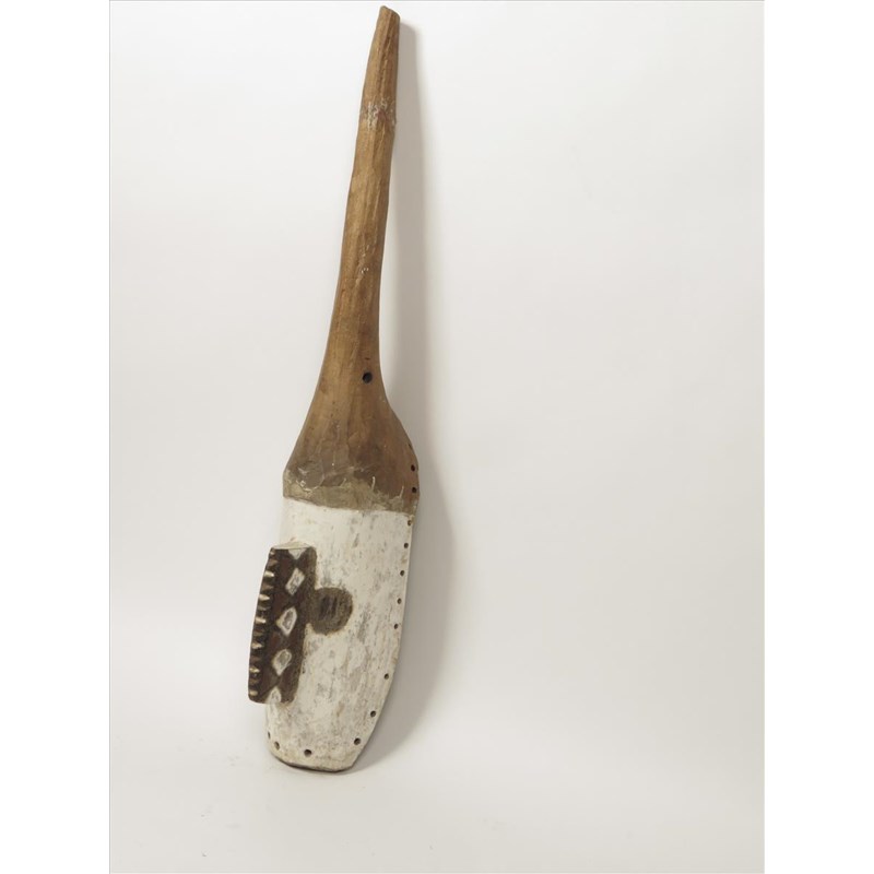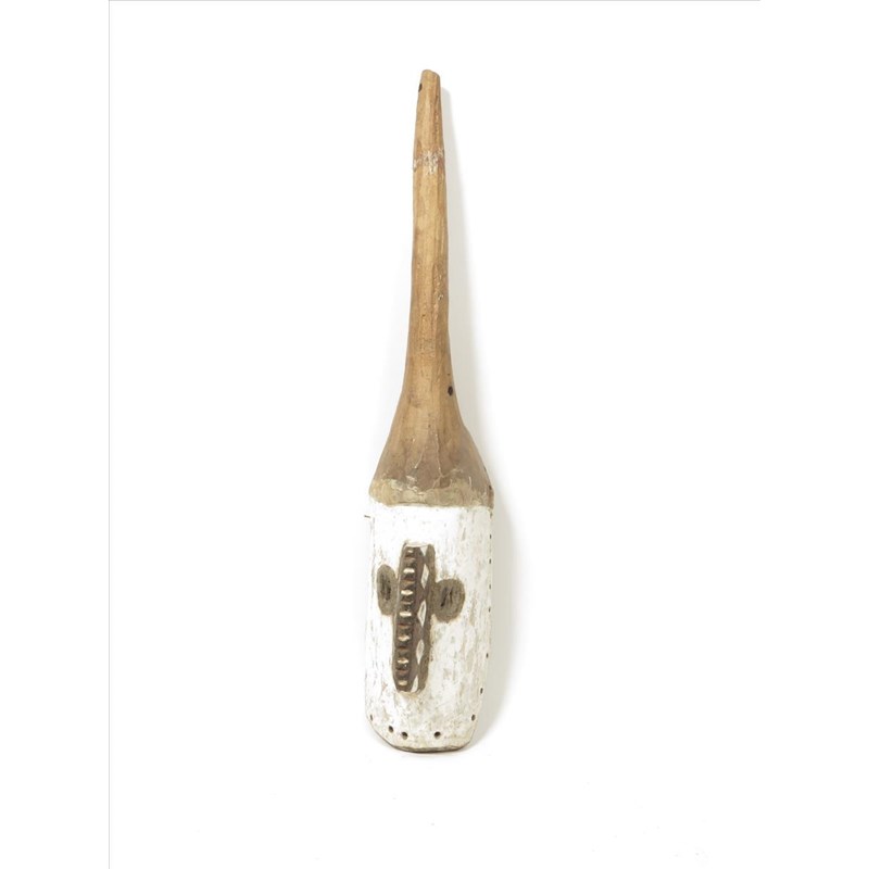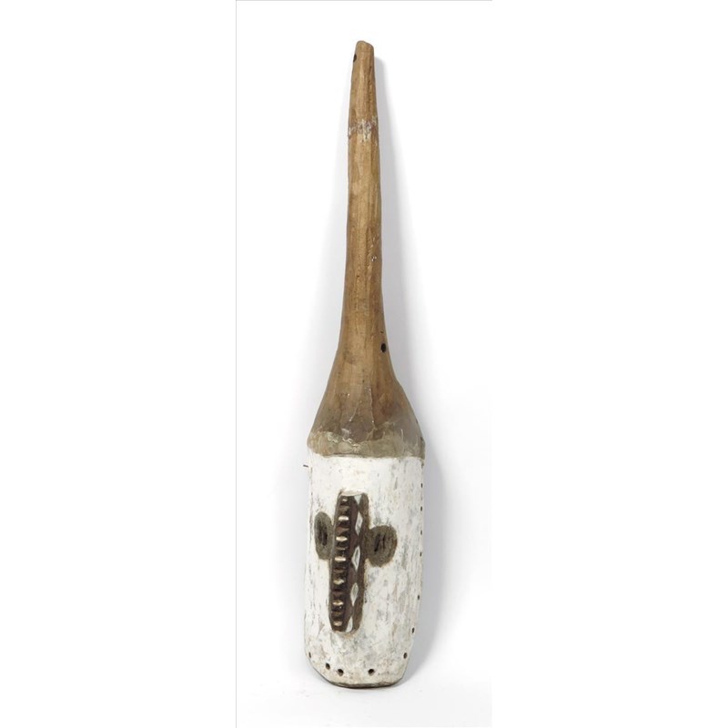 A Mossi mask, with conical surmount and ridged nose, with black, red and white pigment, 93cm (high).