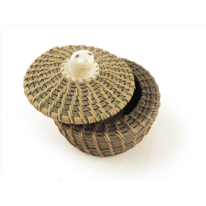 An Inuit baleen and bone circular box and cover