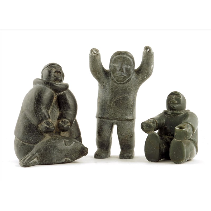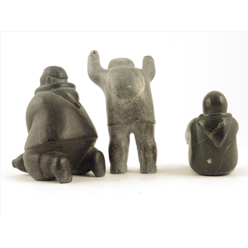 Three Inuit carved stone figures; two hunters