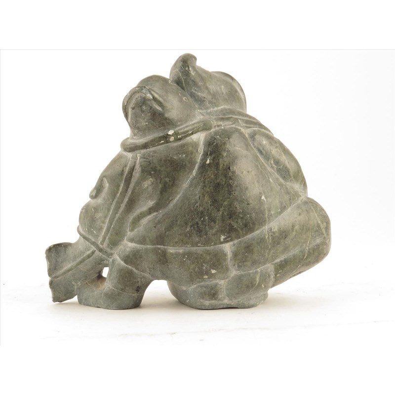An Inuit carved greenstone group by Elisseapik