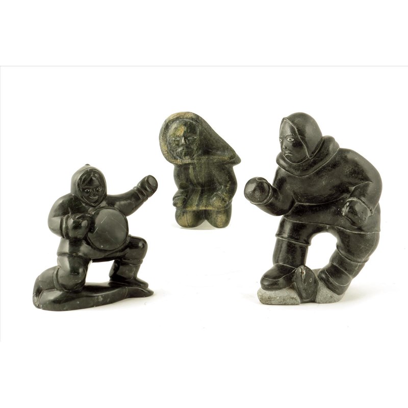 Three Inuit greenstone carved fishermen