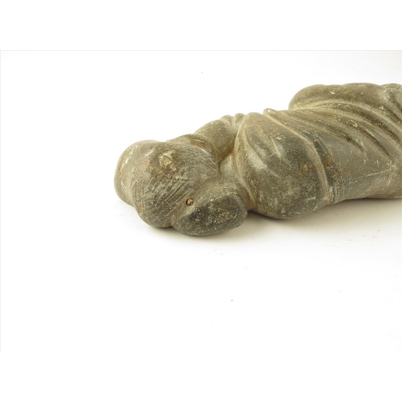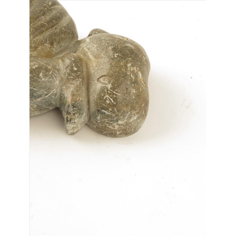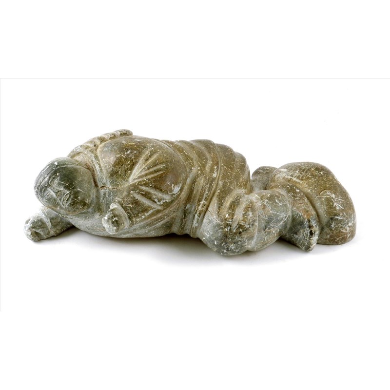 An Inuit soapstone recumbent fisherman