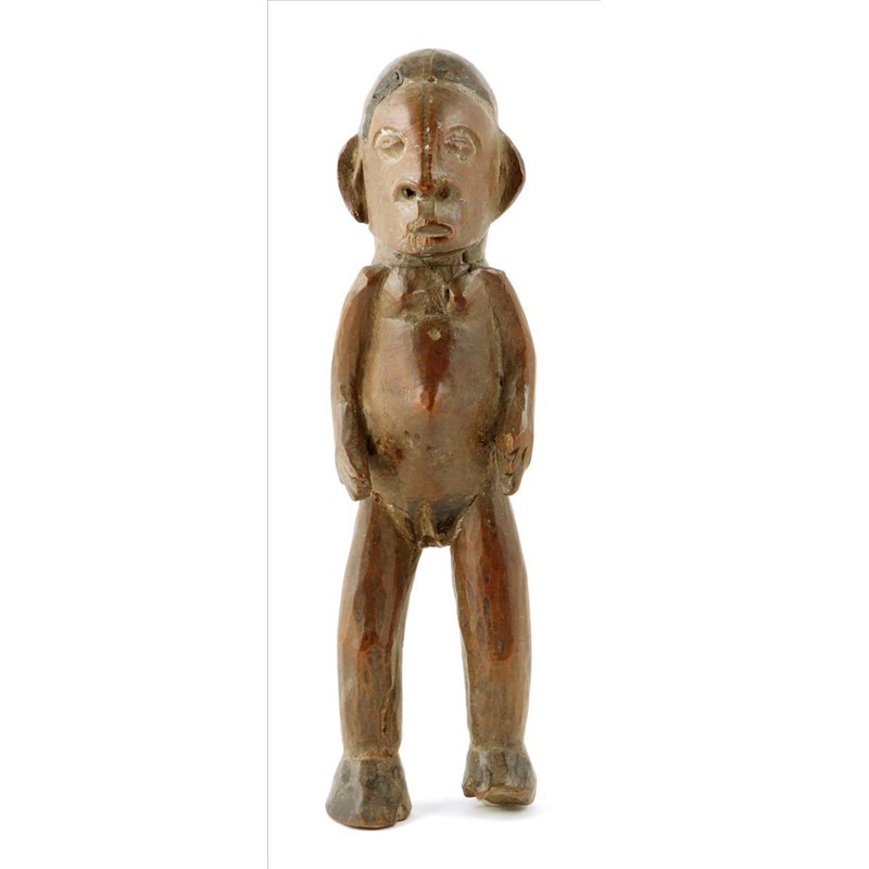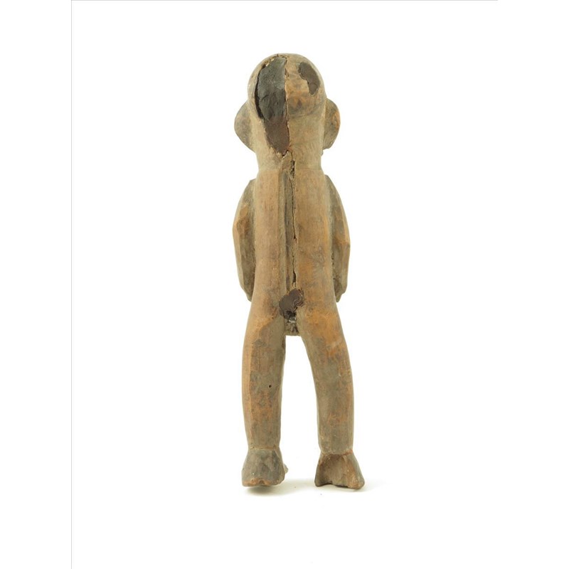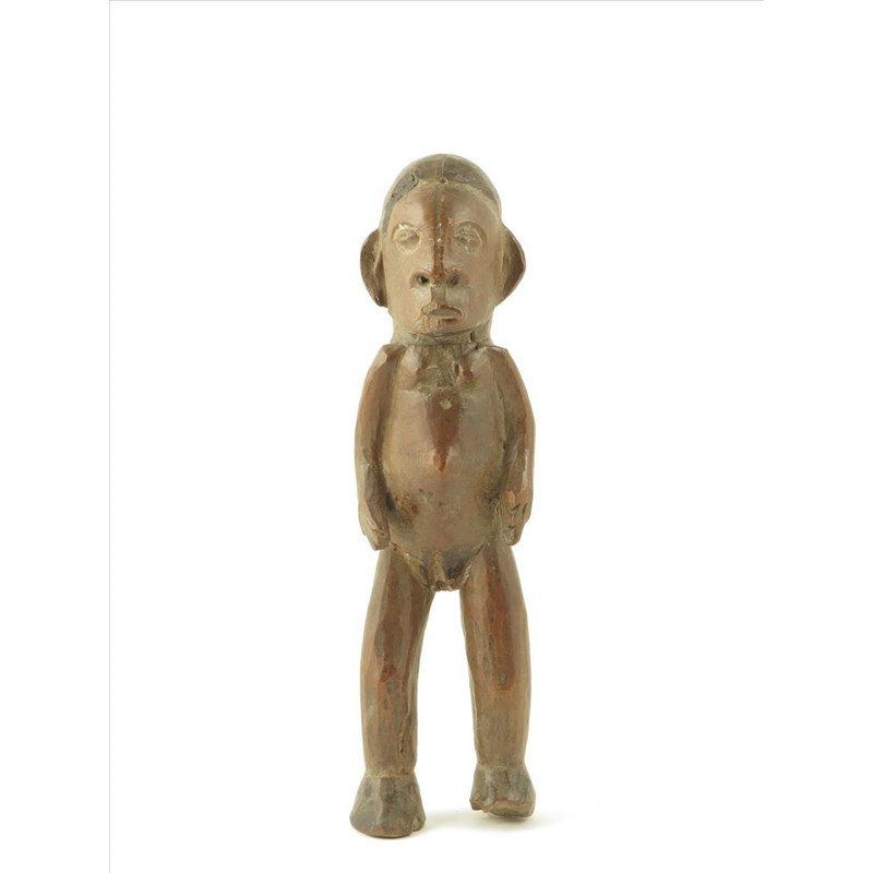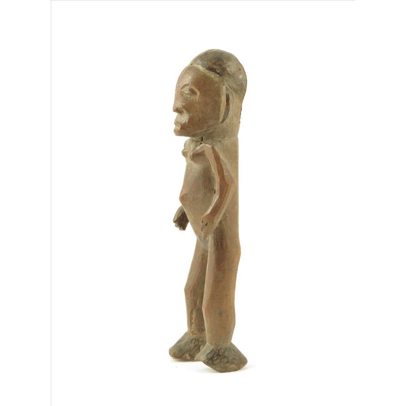 A Congo wood female figure, with face scarifications and stained coiffure, pelvic area and feet, 30cm high.