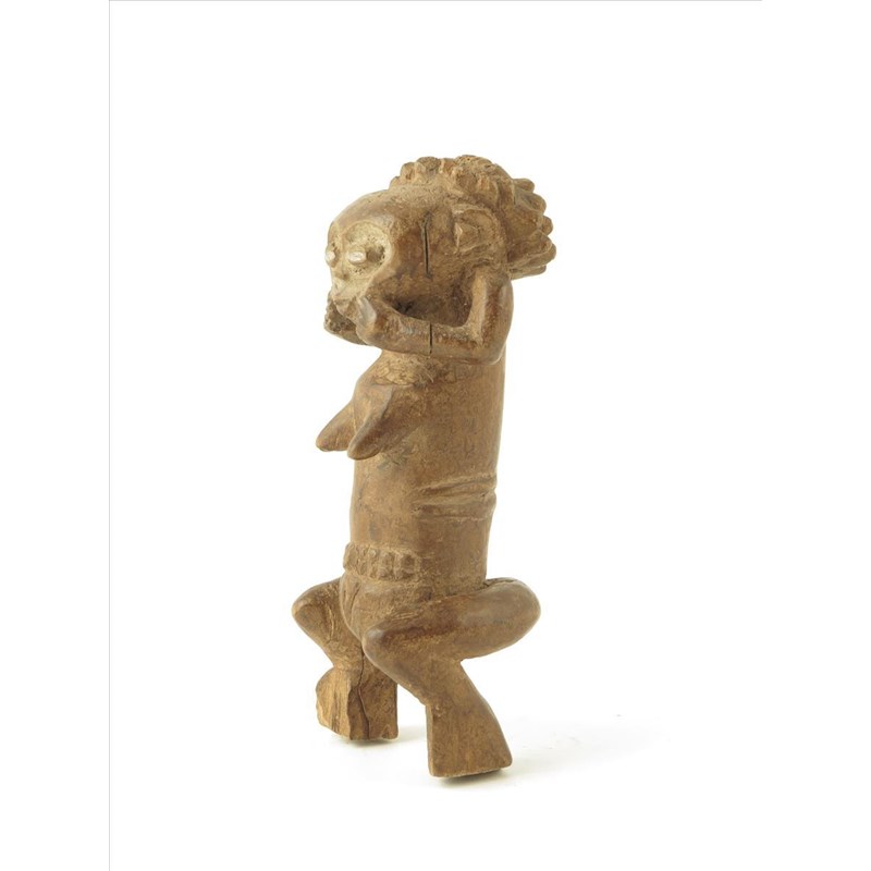 A Mambila standing female ancestor figure, with studded effect coiffure, 18cm high.