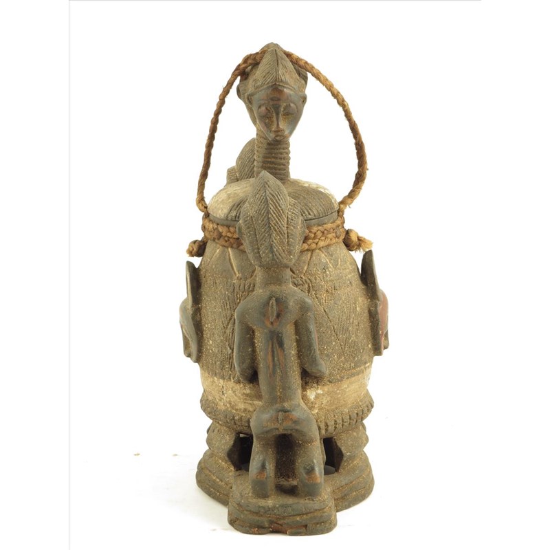 A Baule pot and cover, with male and female figures, mask and heads, 40cm high.