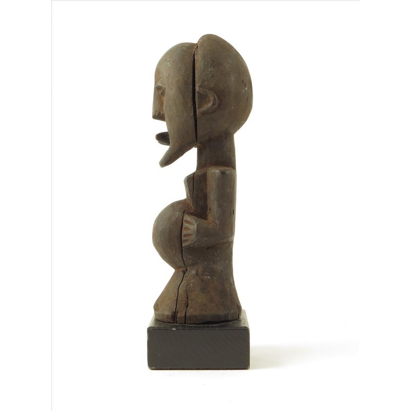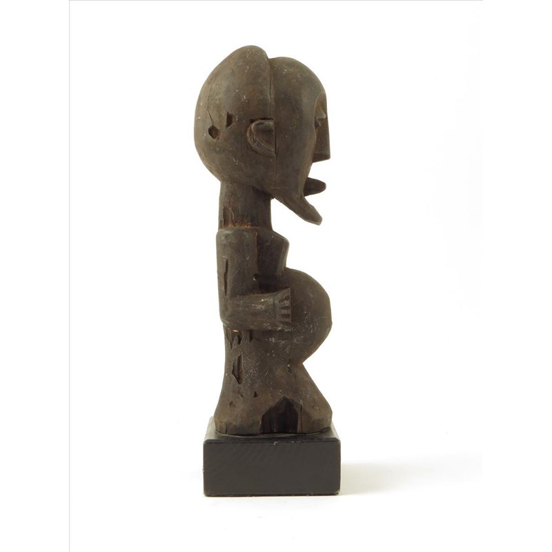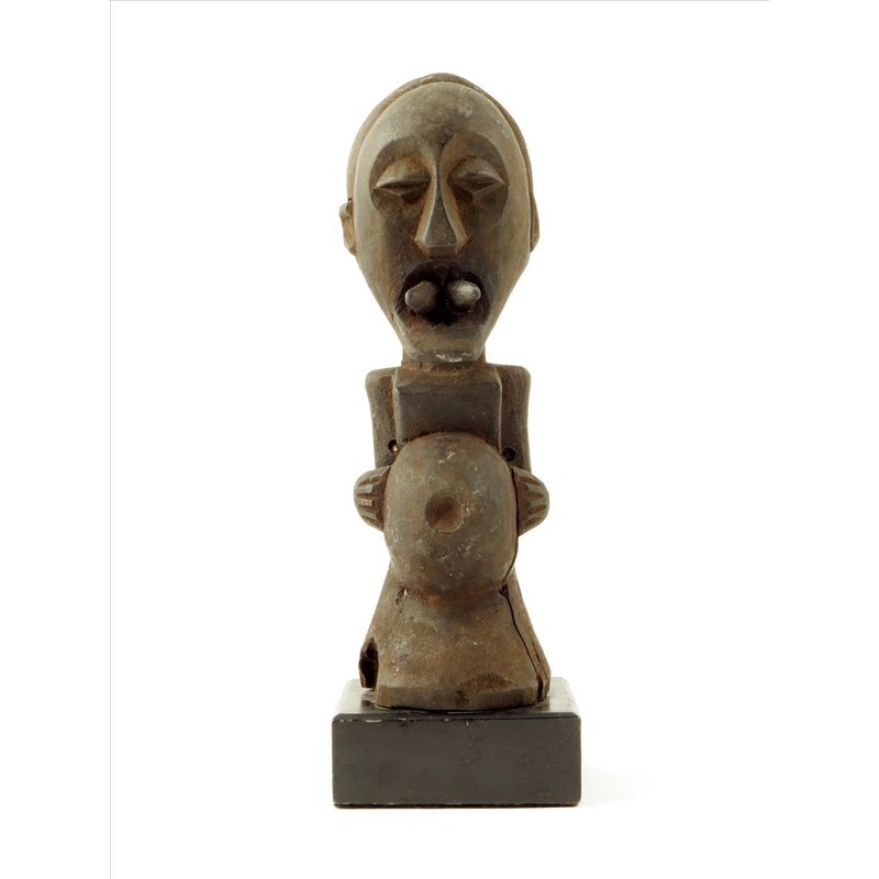 A Songye fetish figure, D.R.Congo, the mouth issuing two horns, with large abdomen, on later stand, 31.5cm high.