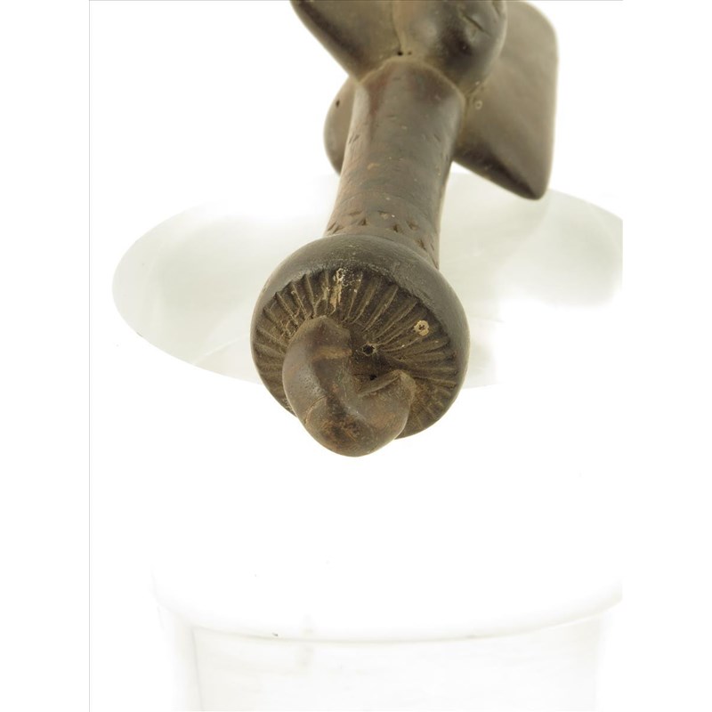 A Yoruba Shango hand staff, Nigeria, carved wood with masks and thunder-axe, 21.2cm high.