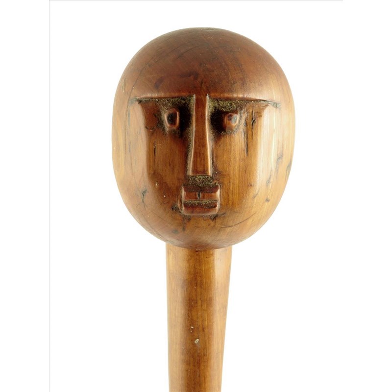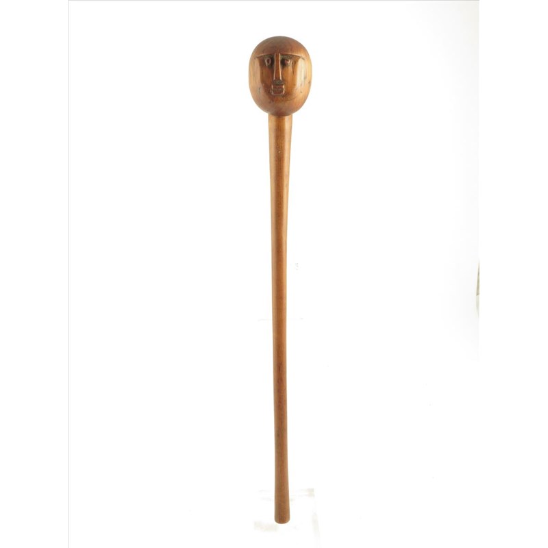 An African knobkerrie, the ball finial relief carved a head, 67cm long.