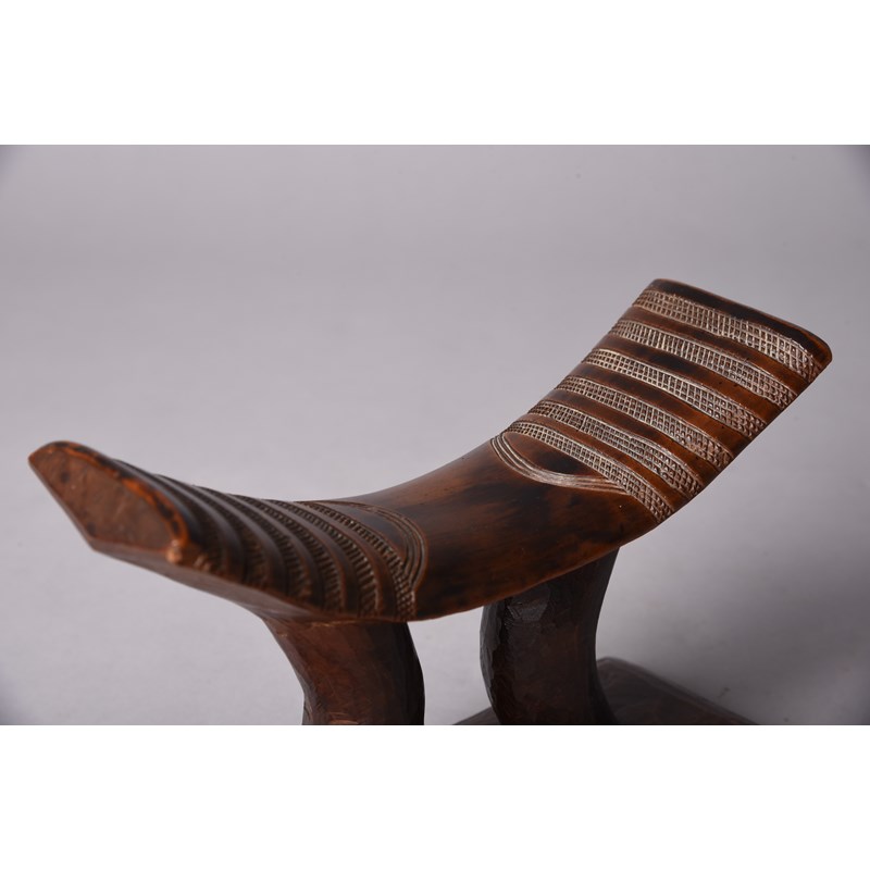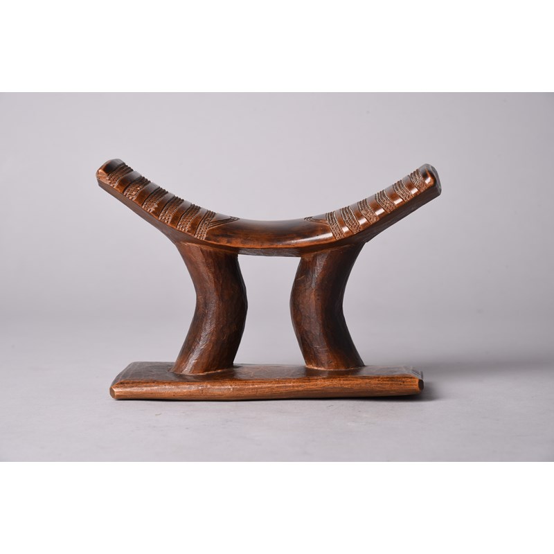 the top with carved bands of diaper and two arcs, on twin angled supports and a rectangular base,