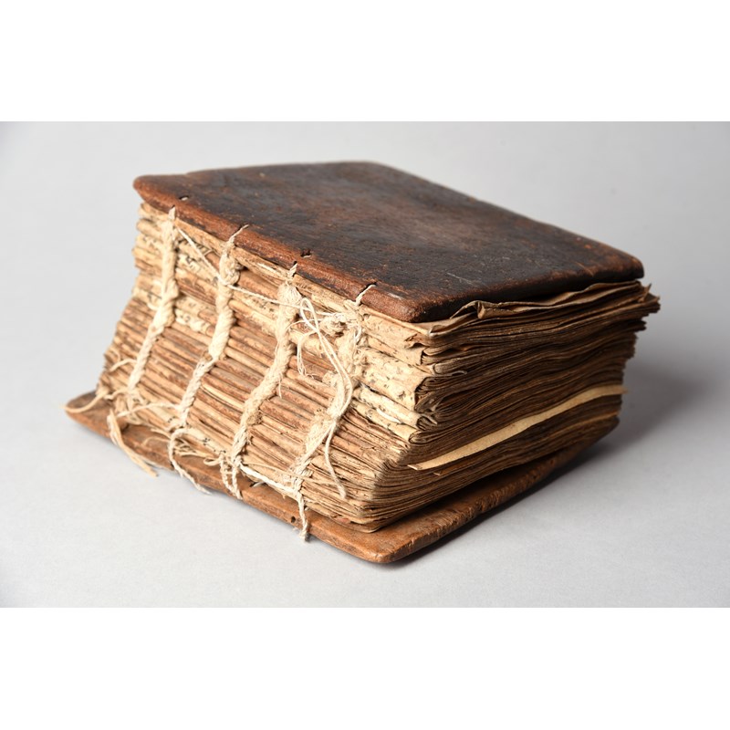 written in black and red ink on vellum, comprising of twenty one separate sections bound within wooden boards,
