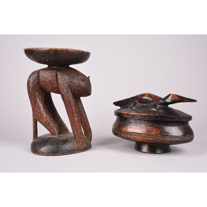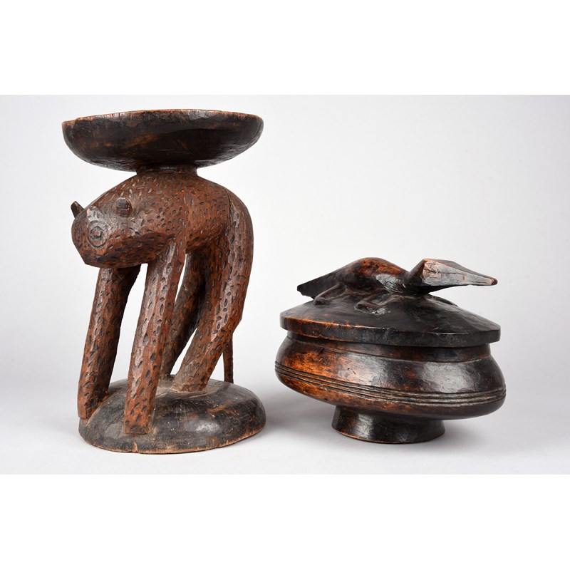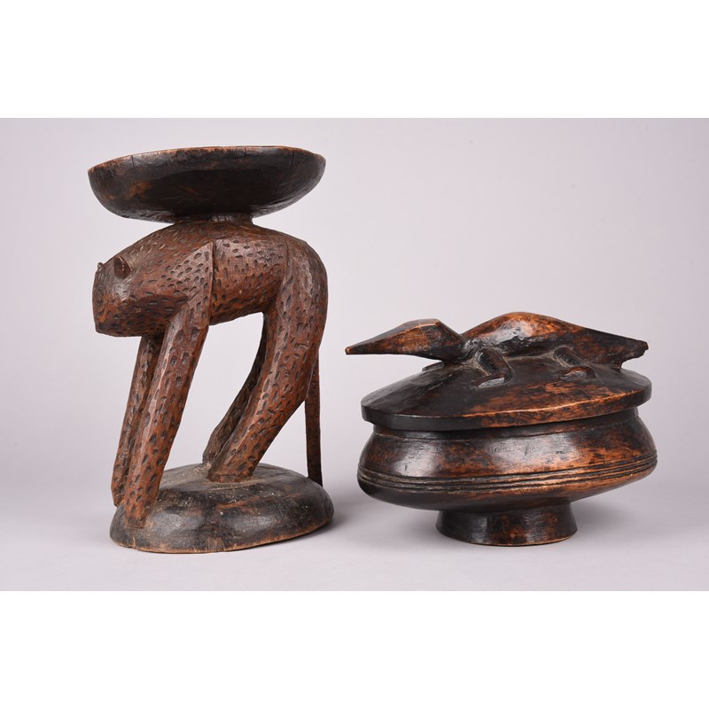 and a Rotse bowl and cover, with a carved lizard, 17.5cm high. (3)