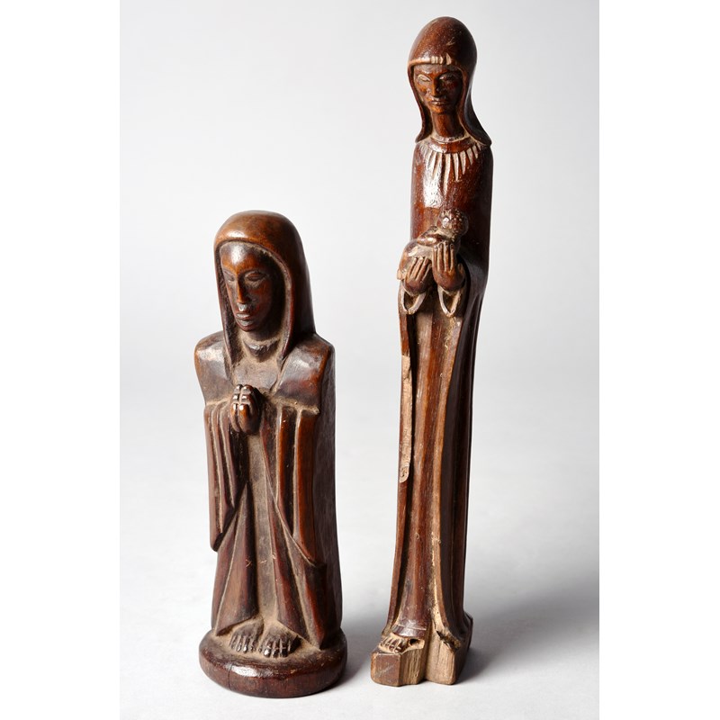 and a West African praying Virgin Mary, 23.5cm high. (2)