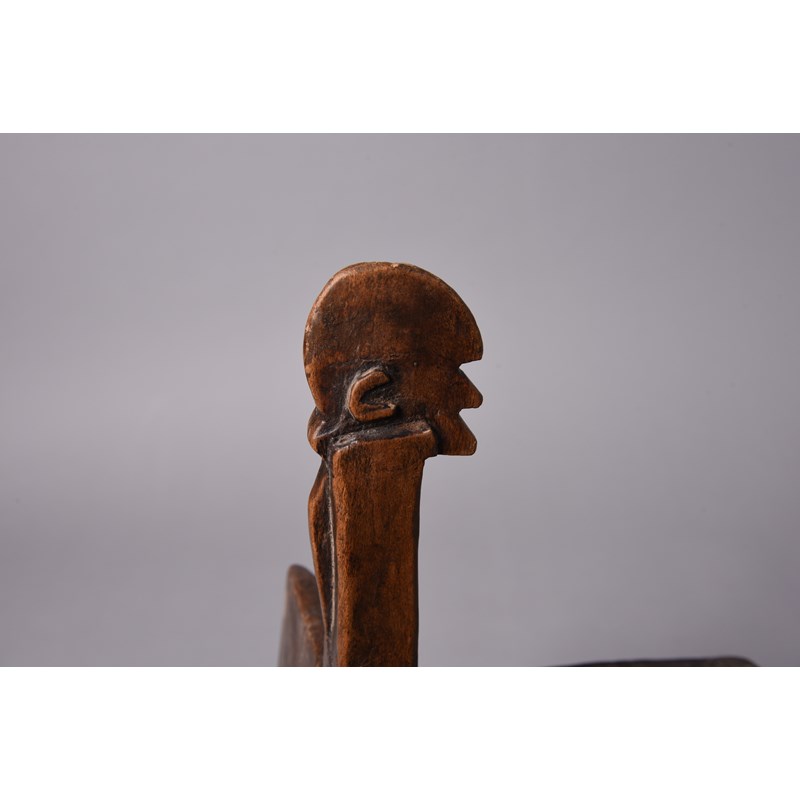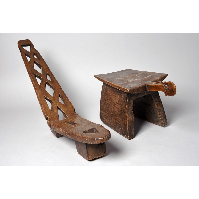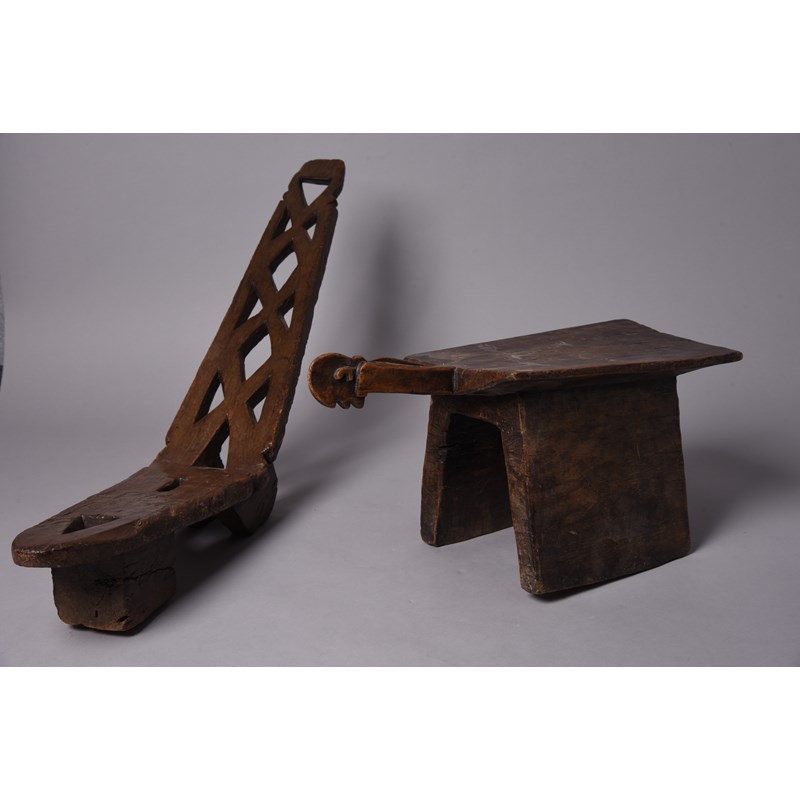 one with a pierced back and seat, 41cm high and the other with a carved head terminal, 28cm high. (2)