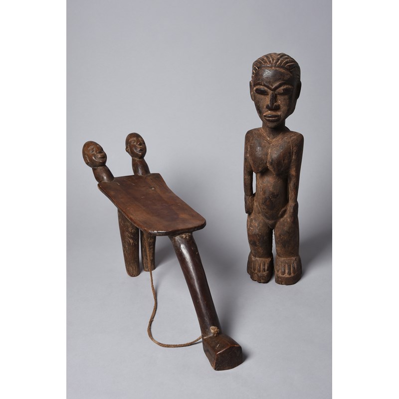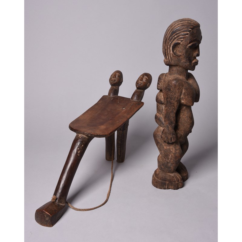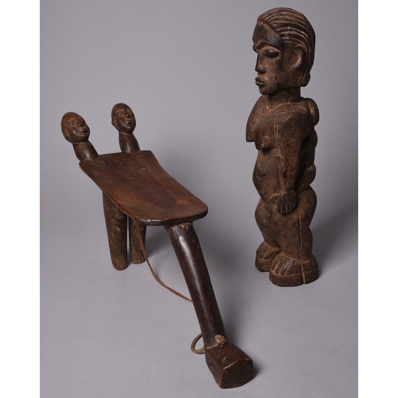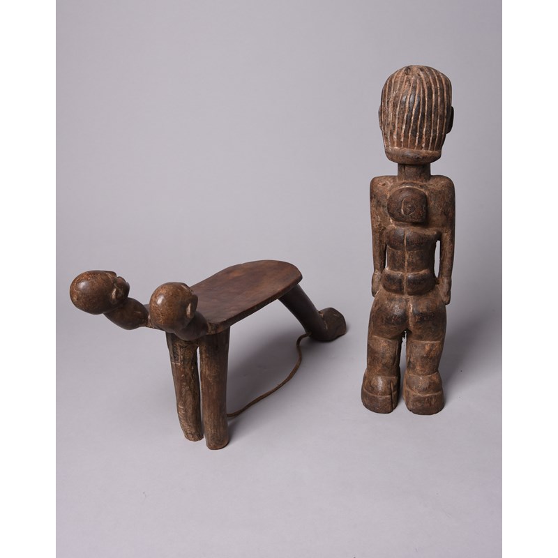 and a Lobi maternity figure, with a child on her back, 51.5cm high. (2)