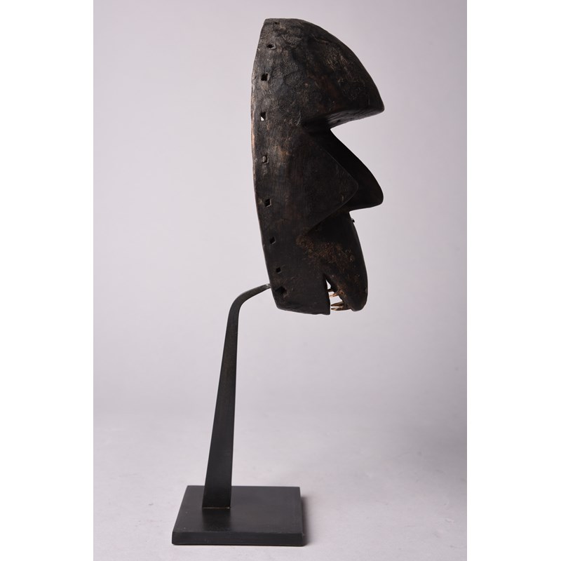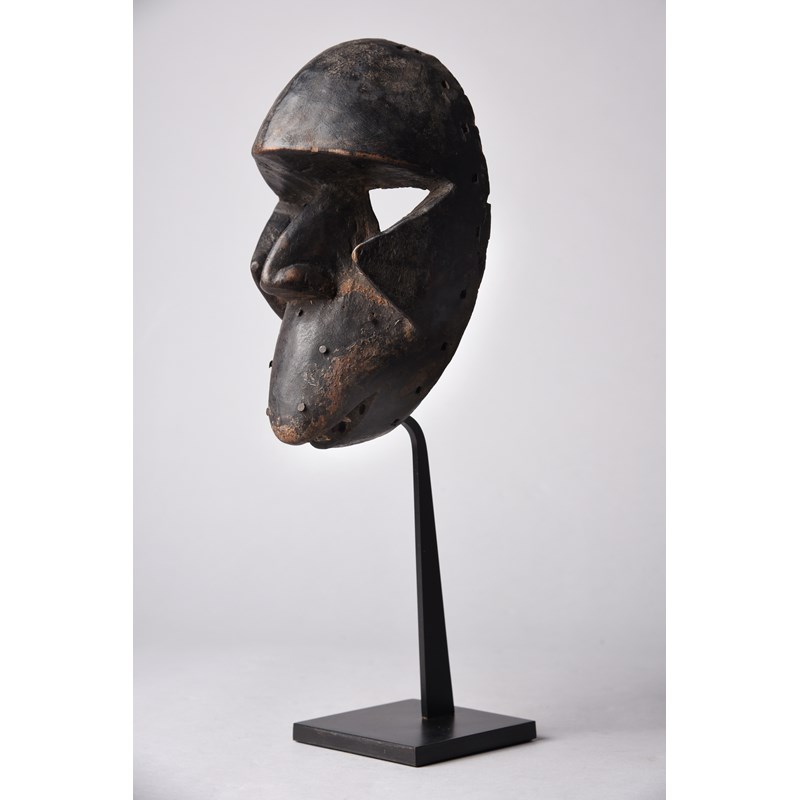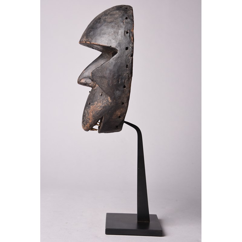 representing a chimpanzee with nails remaining around the muzzle and with inset teeth, the edges with squared fastening holes,