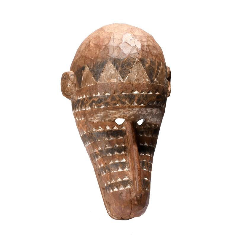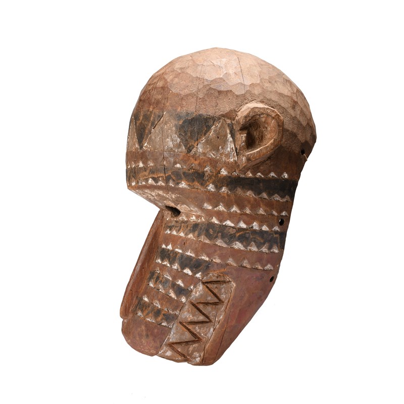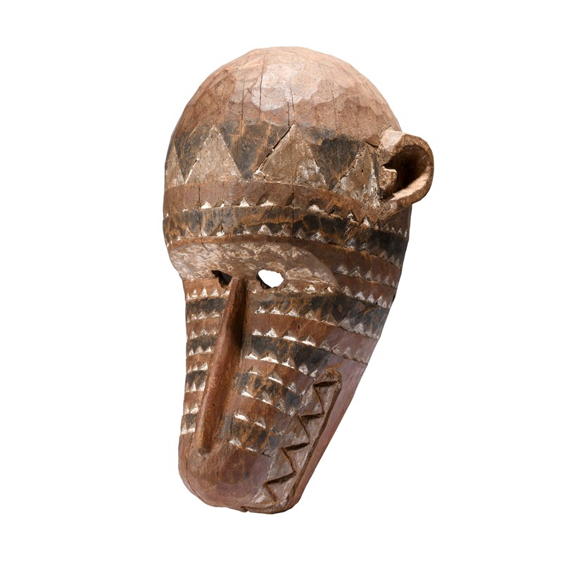 with carved and pigment decoration, with a handwritten label Masque Singe Bobo Fing Village Kouroumani,
