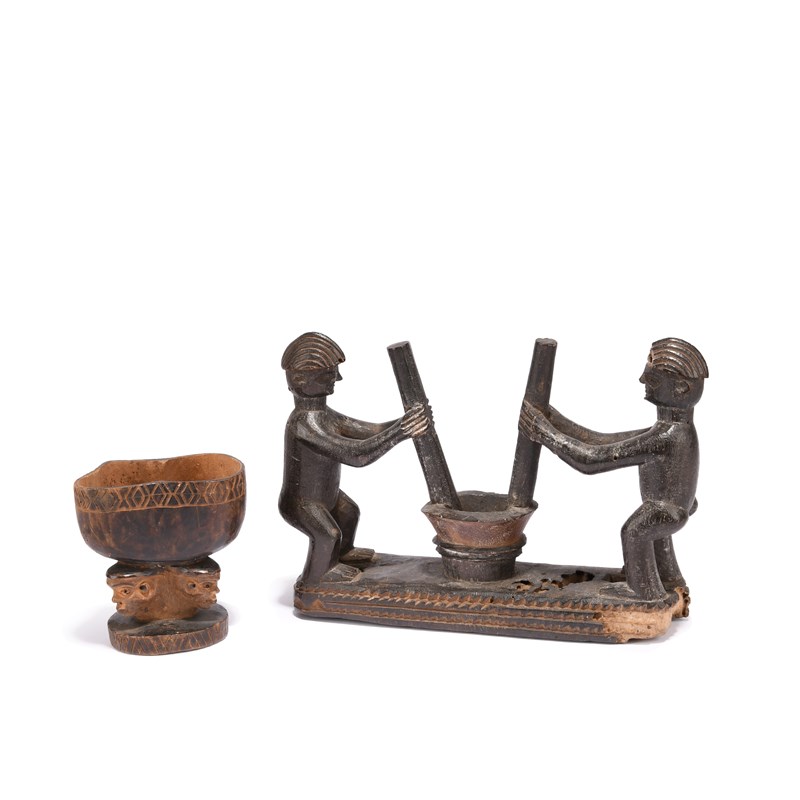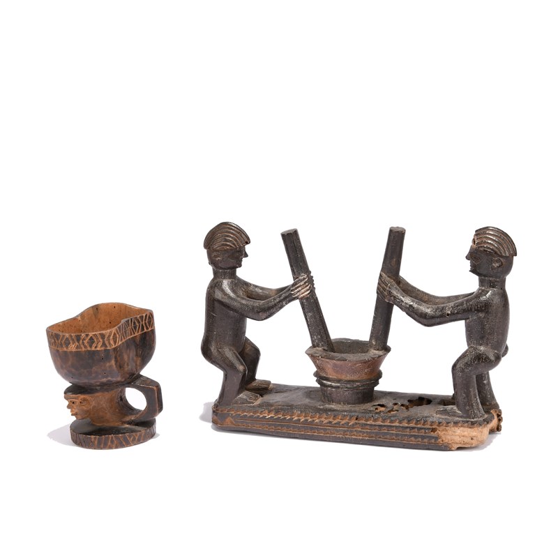 and a Pende group of two figures pounding pestles in a mortar, 13cm high. (2)