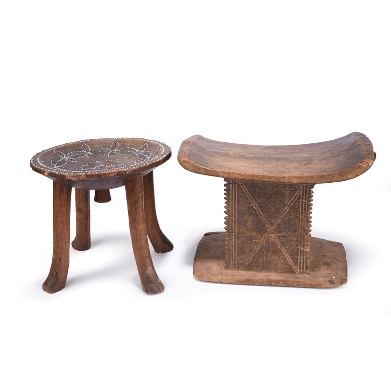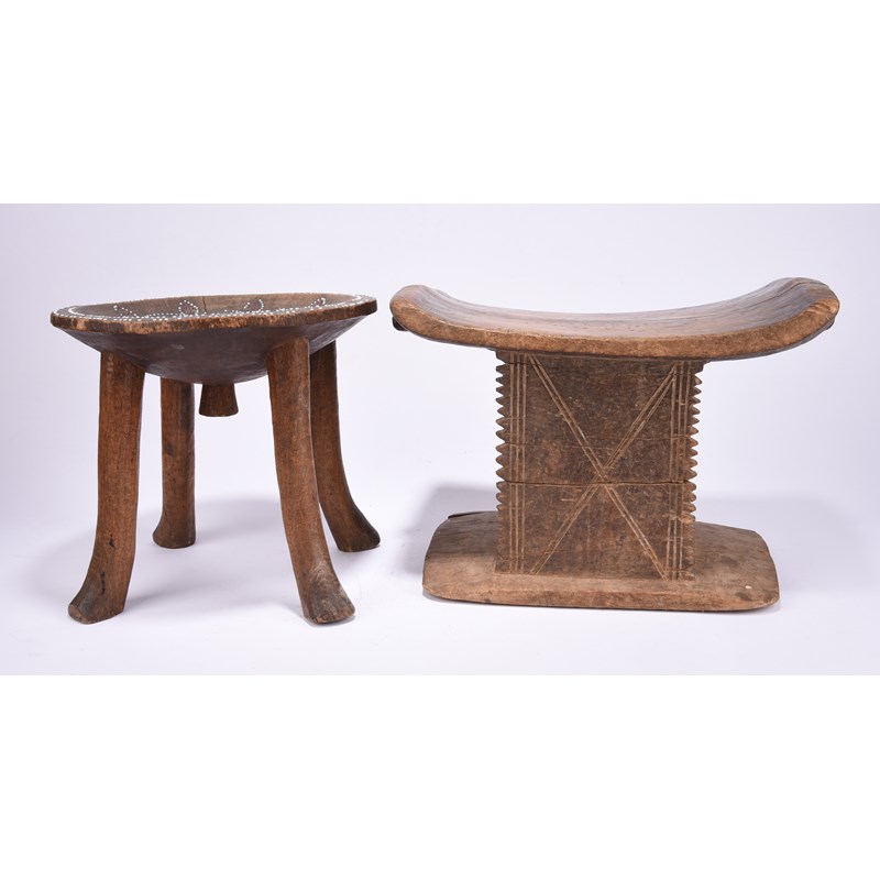 and a Kamba stool, with a beaded seat, 28cm high. (2)
