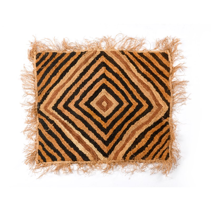 raffia with a dyed cut pile radiating square design,