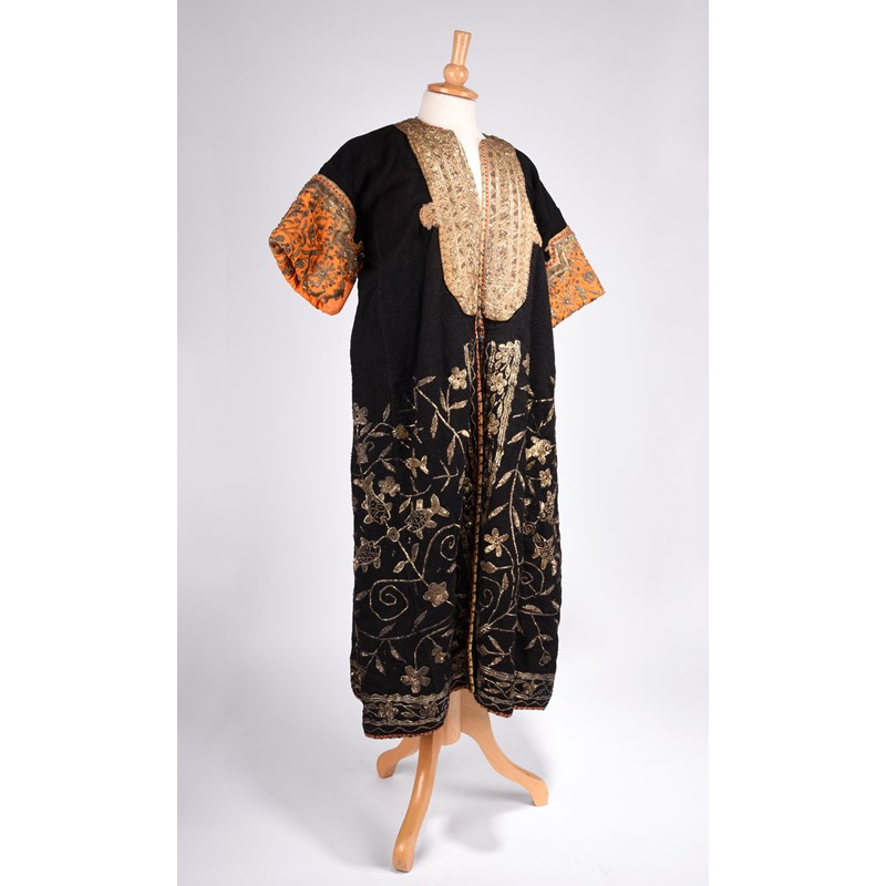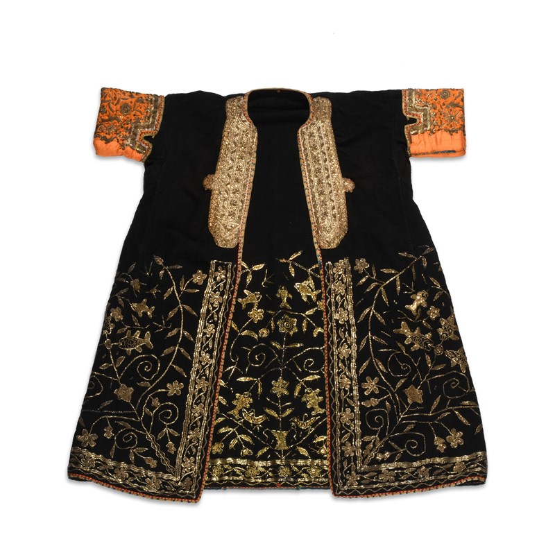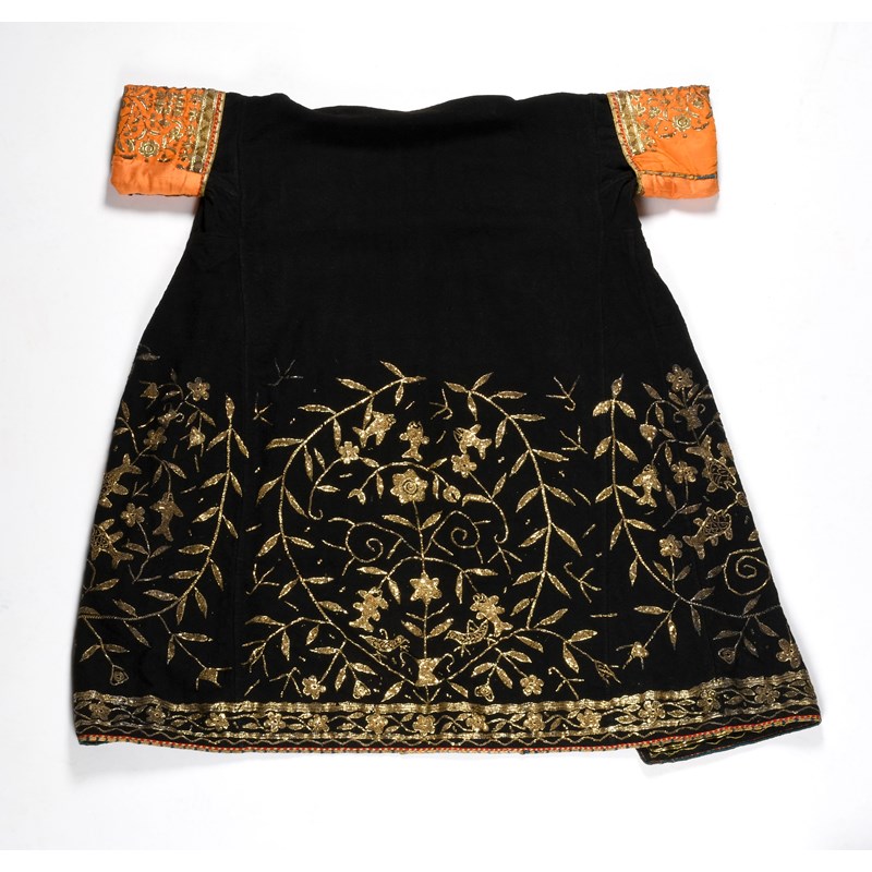 wool, silk and gilt thread embroidery, decorated with foliage and fish,
