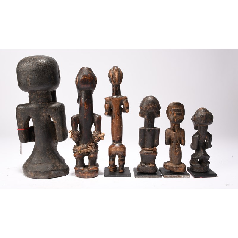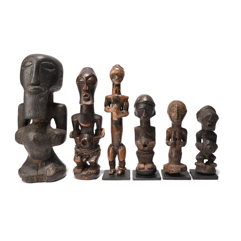 a Luba half figure, 13cm high, on a base and four Songye figures, 12cm, 14.5cm, 20cm and 22.5cm high, two on bases. (10)