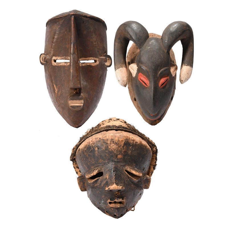 a Lulua mask, 27.5cm high and a Baule antelope mask, 25cm high. (3)